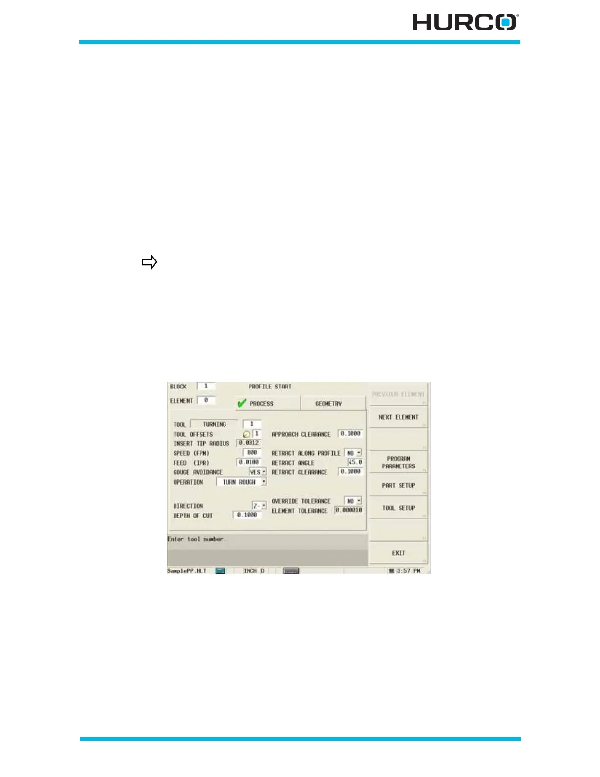To create a Profile from the New Block screen, select the TURNING F2 softkey followed