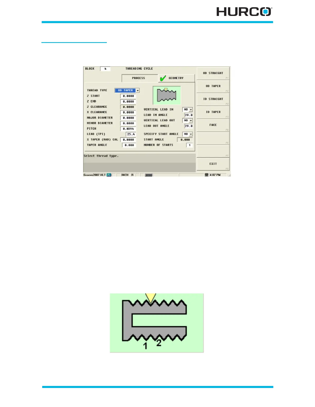 Figure 2–30. Threading Cycle Geometry Tab OD Taper Thread Type