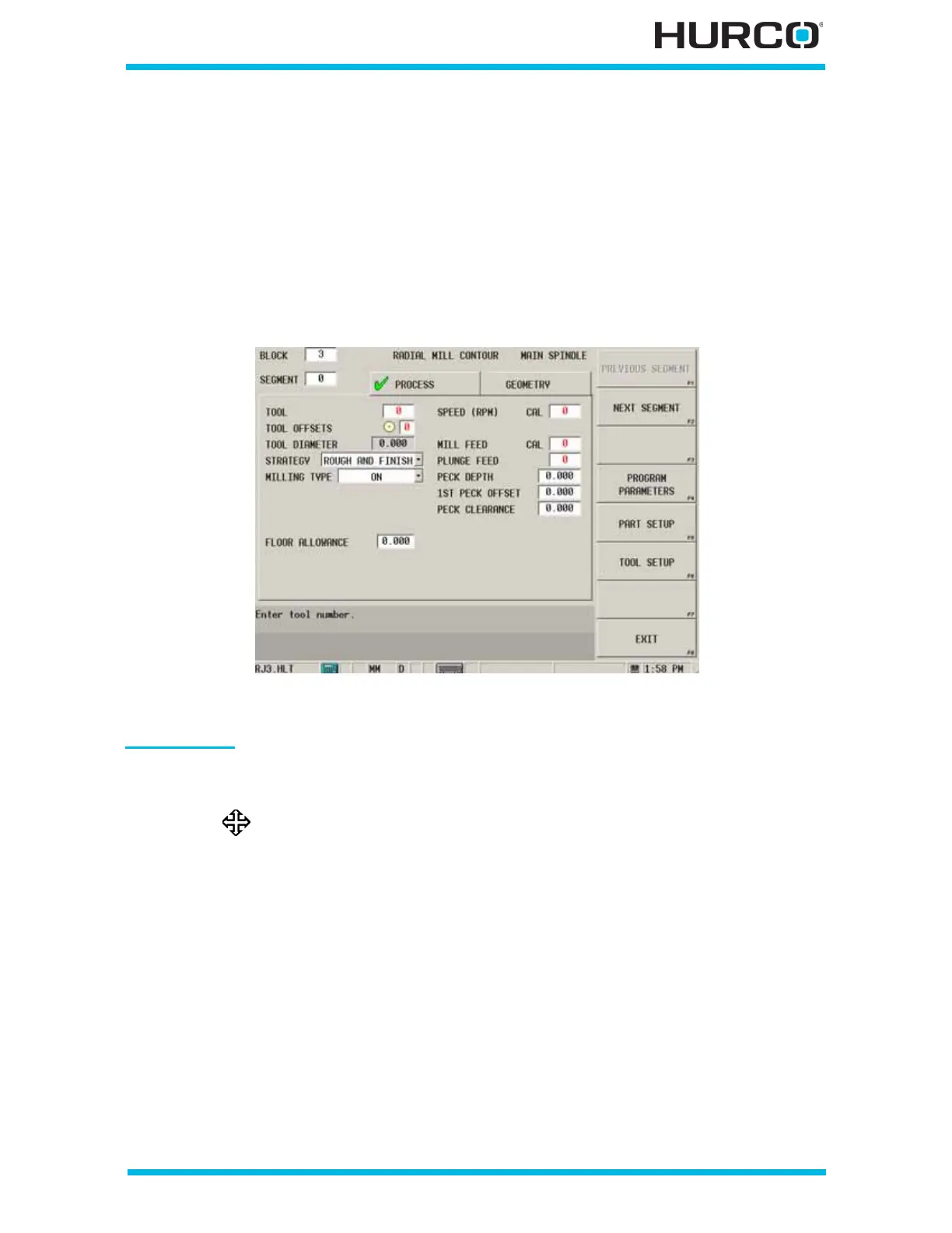 • TOOL DIAMETER—contains the tool diameter programmed in Tool Setup for