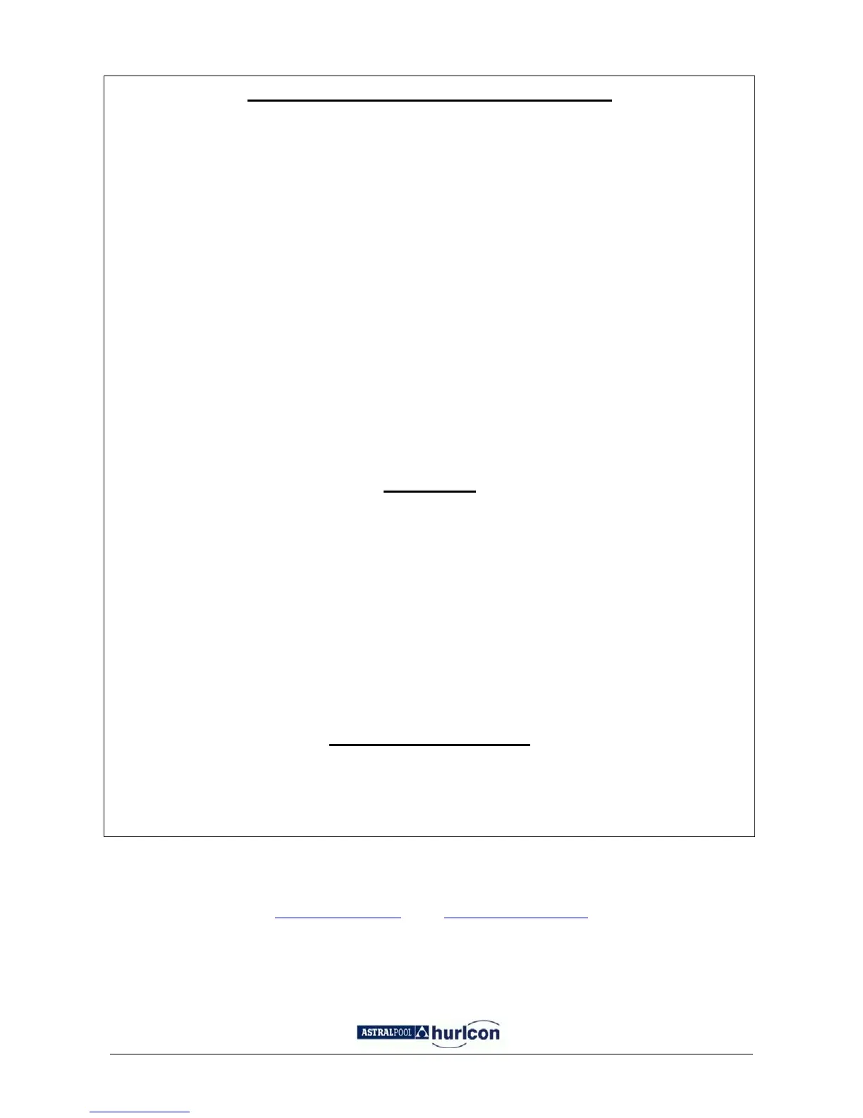 warranties. Refer to Installation and Operating Instructions for water balance guide. AstralPool