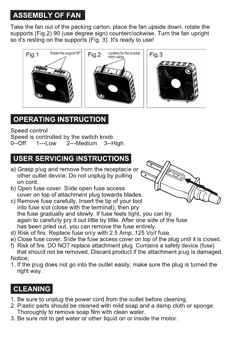 supports (Fig.2) 90 (use degree sign) counterclockwise. Turn the fan upright