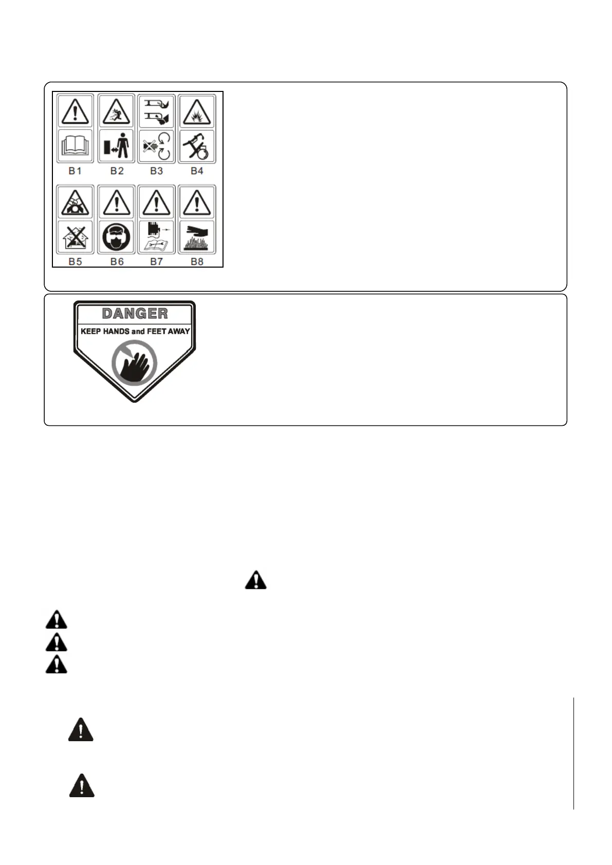Warning: Keep the safety signs clear and visible on the equipment. Replace the safety signs if they are missing