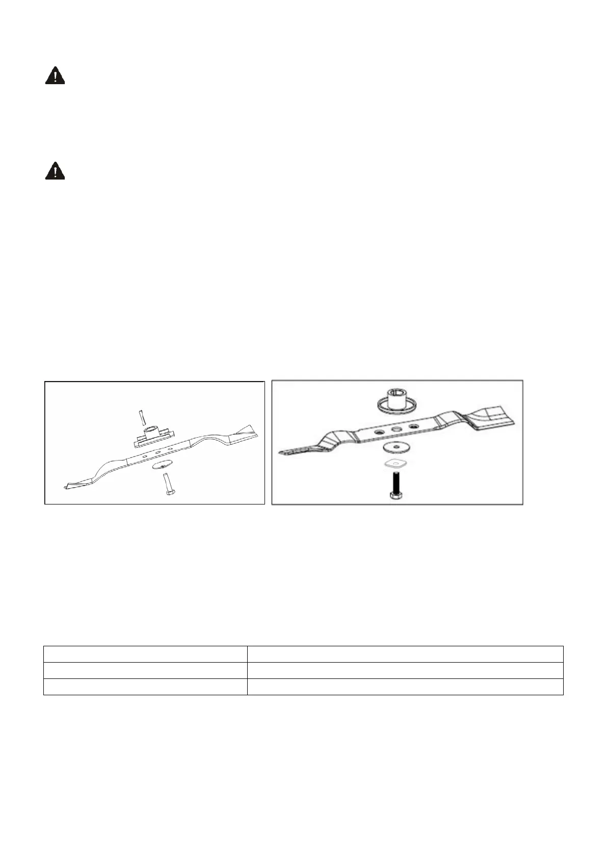 balance will result in excessive vibration causing eventual damage to the engine and mower. The blade can