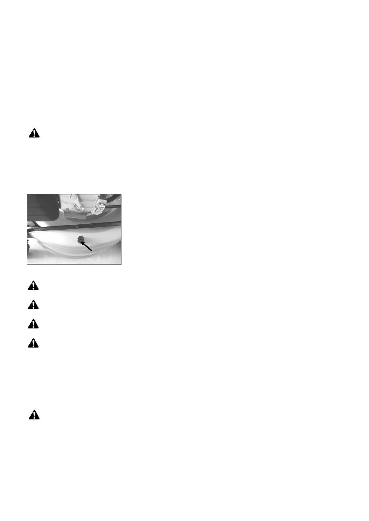 WARNING: When cleaning, omit all other actions, for example mowing, mulching etc.