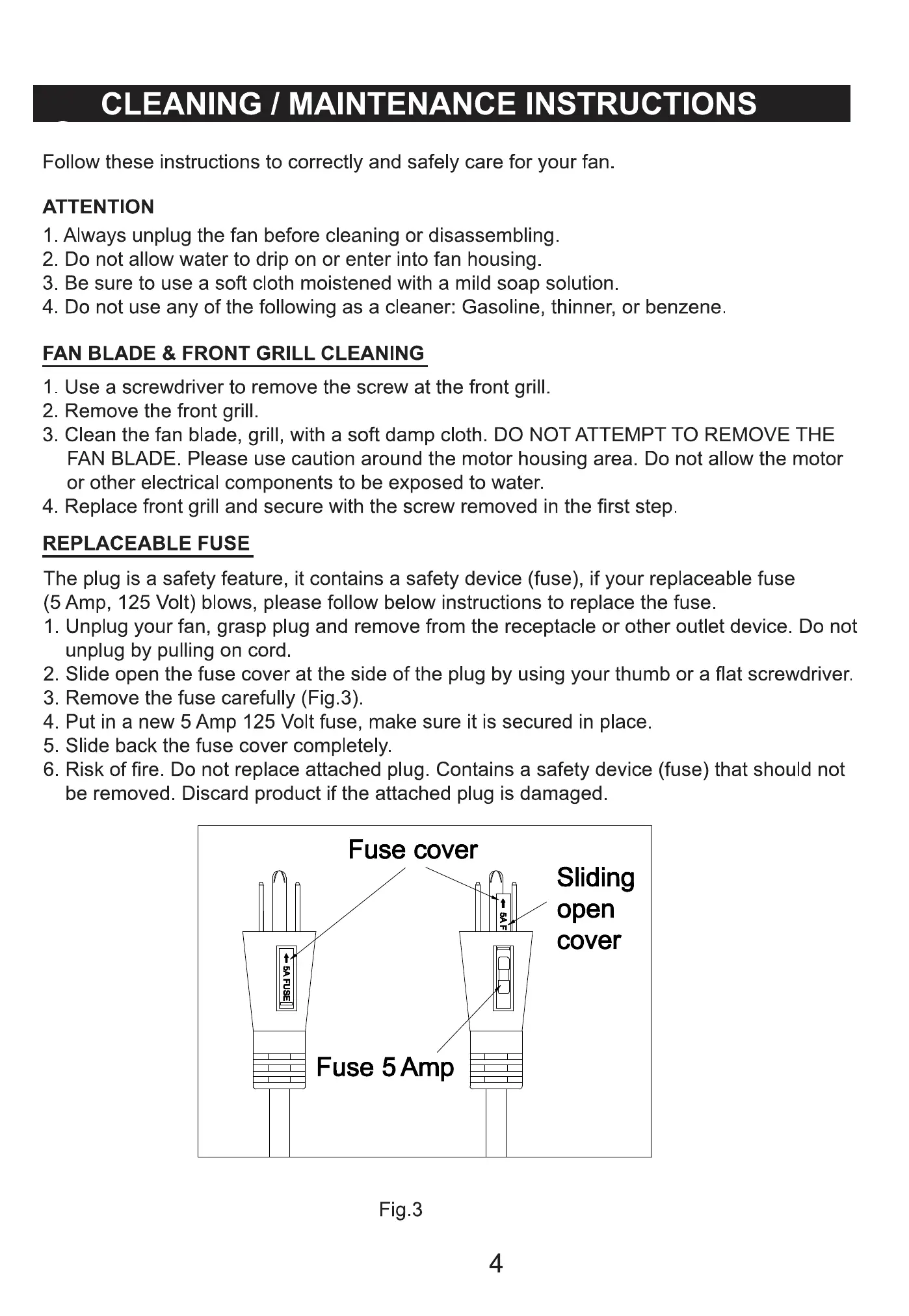 1 Always unplug the fan before cleaning or disassembling