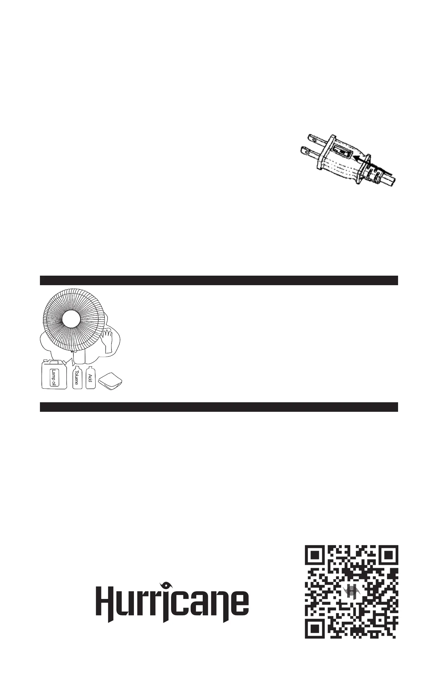• DO NOT use a gasoline thinner or other chemicals to clean fan.