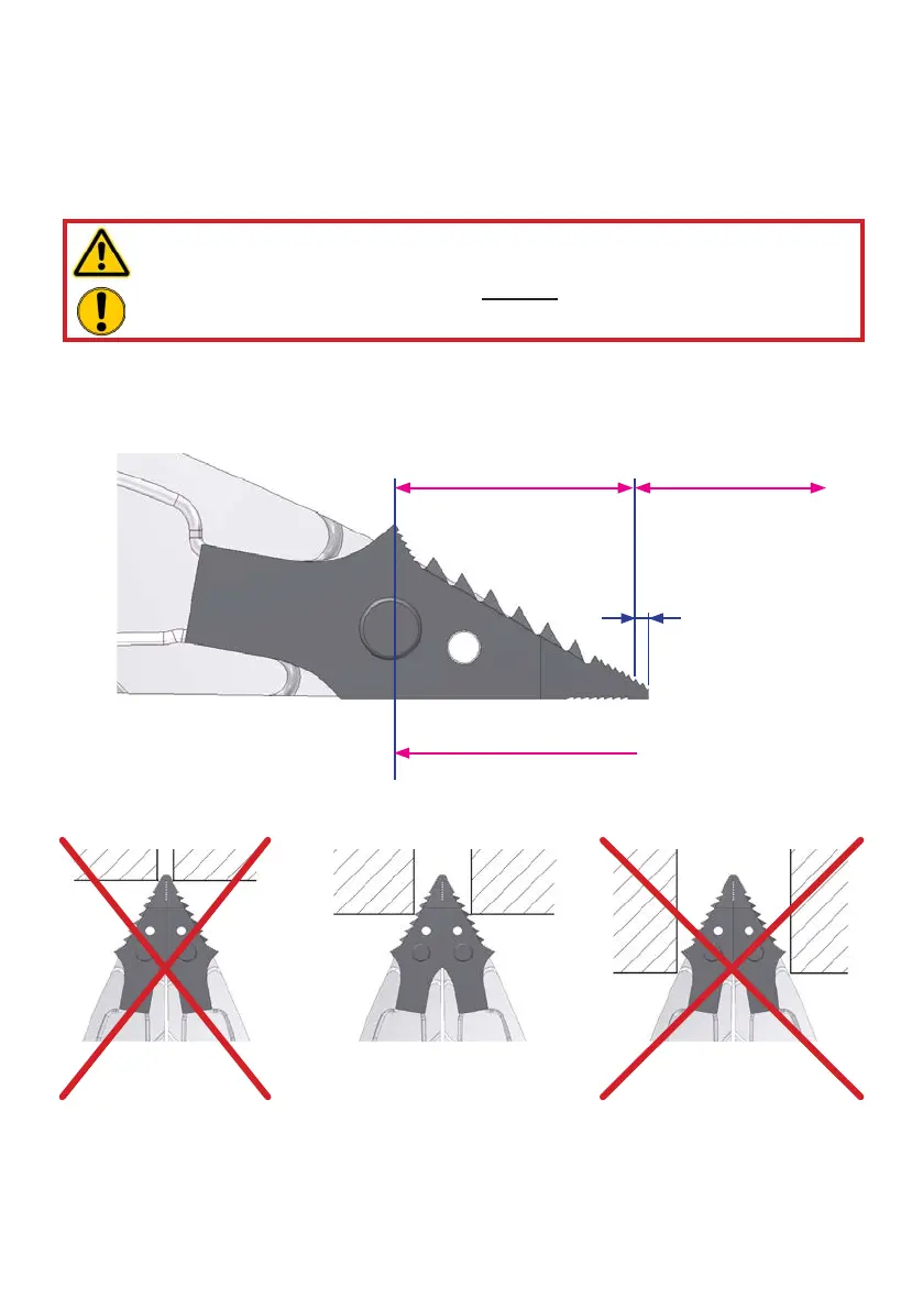 Use the front area of the tips for increasing the gap only. Full spreading capacity can be