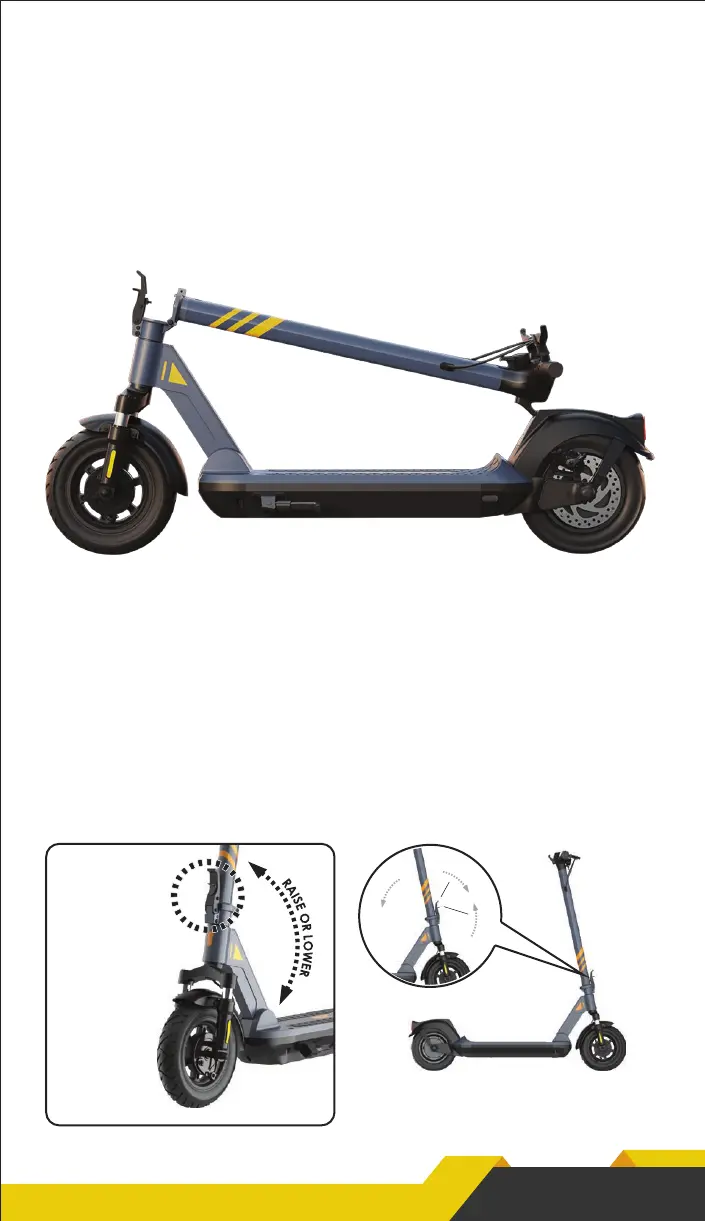 fully vertical. Pull the safety lock up on the front of the scooter and
