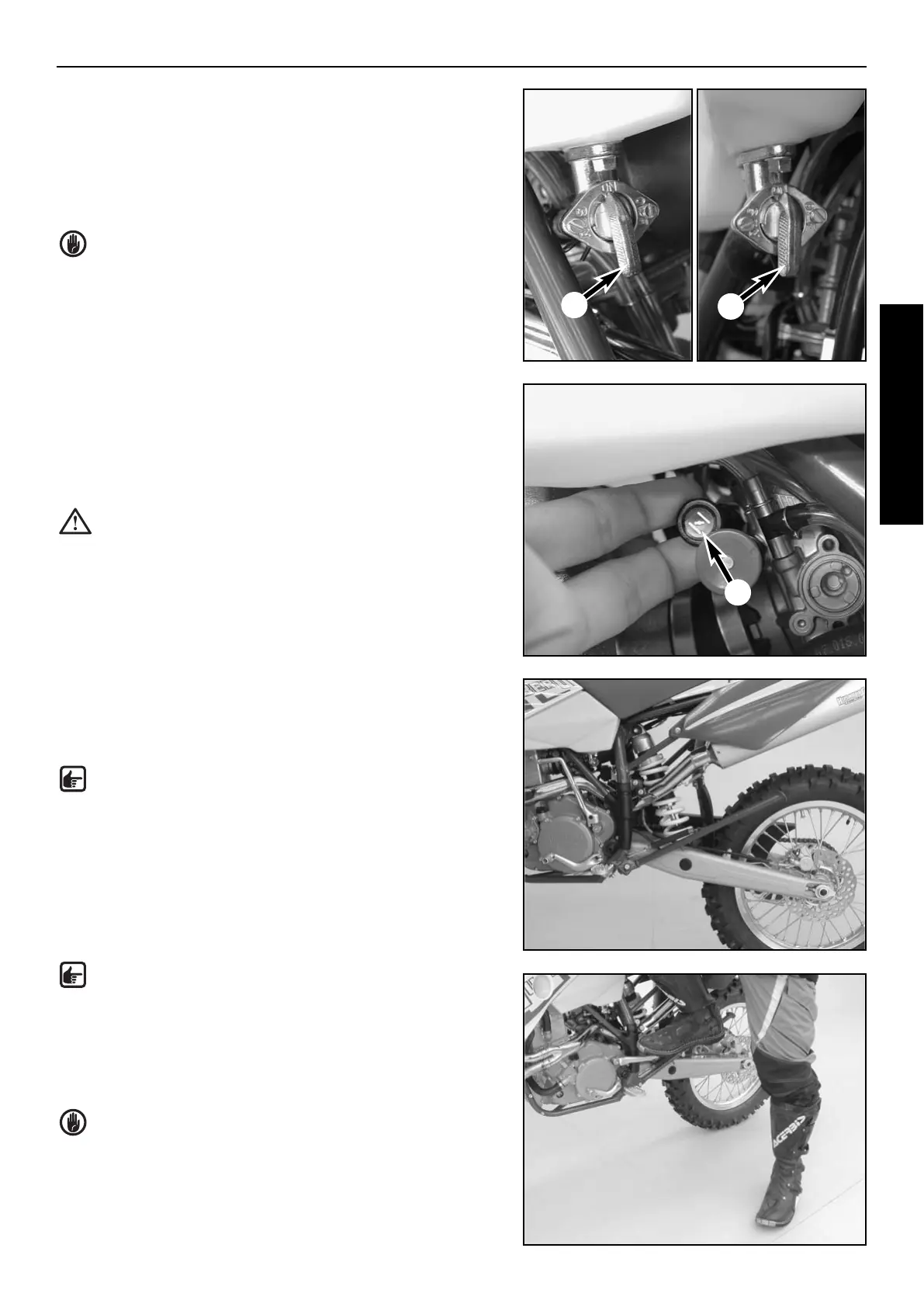 fully rev up the engine, actuate the kickstarter 5 to 10 times or actuate