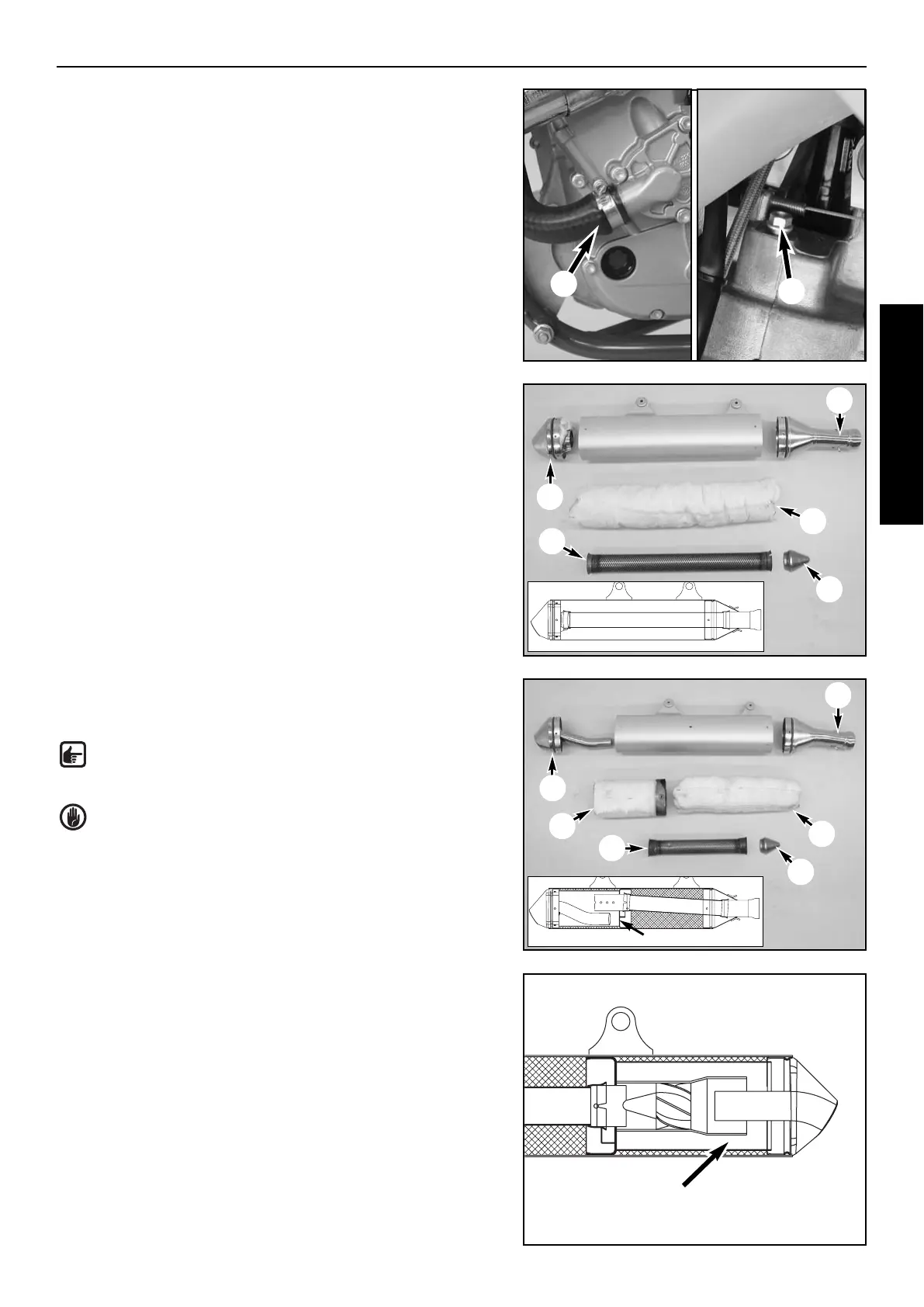exhaust pipe (6) out of the silencer. Clean the front inner exhaust pipe.