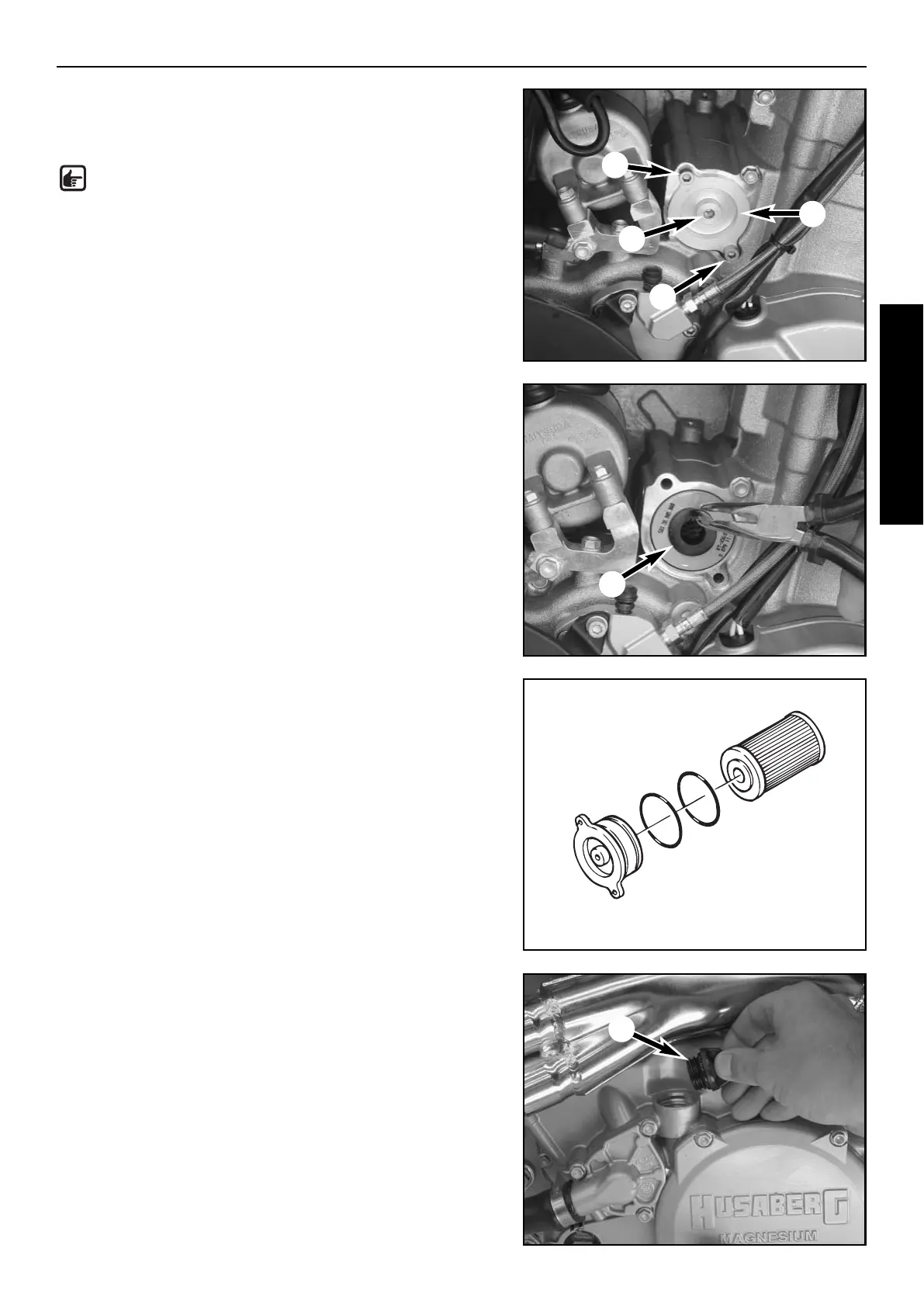 engine oil. Insert the oil filter in the housing.