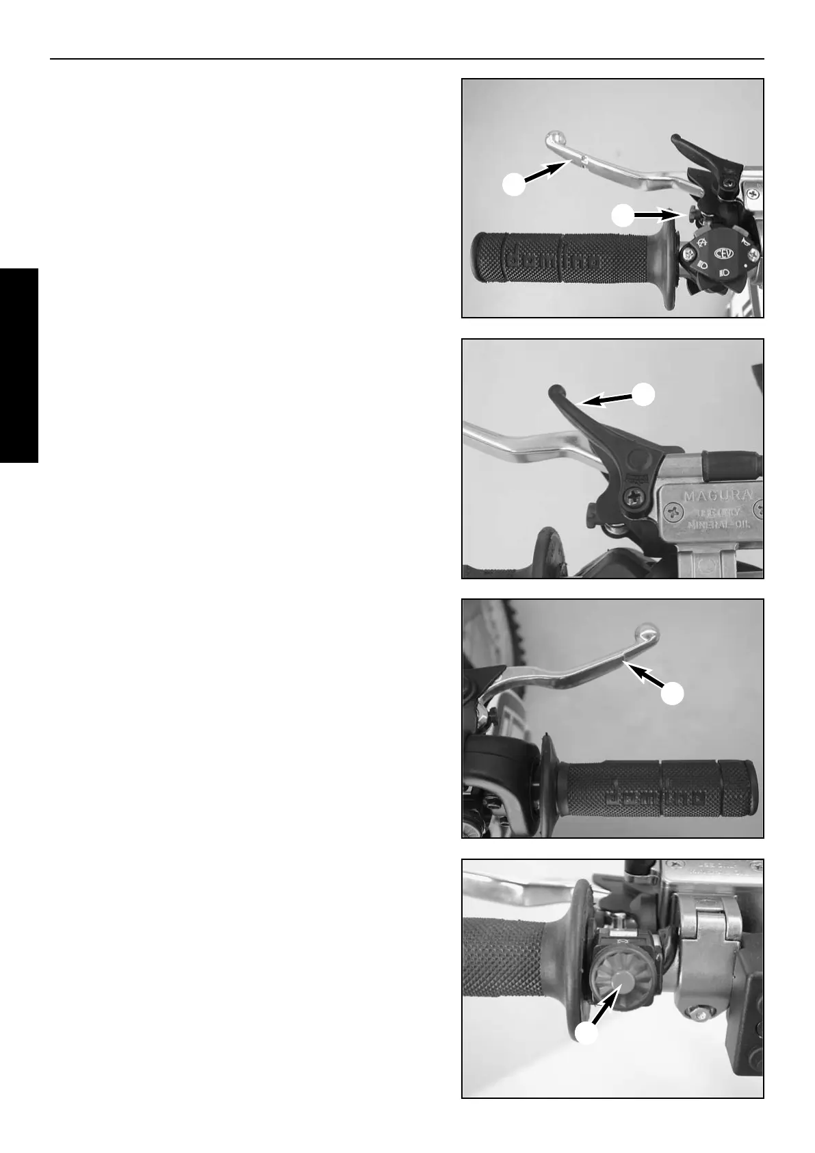 The clutch lever (1) is located on the left side of the handlebar. The adjust-