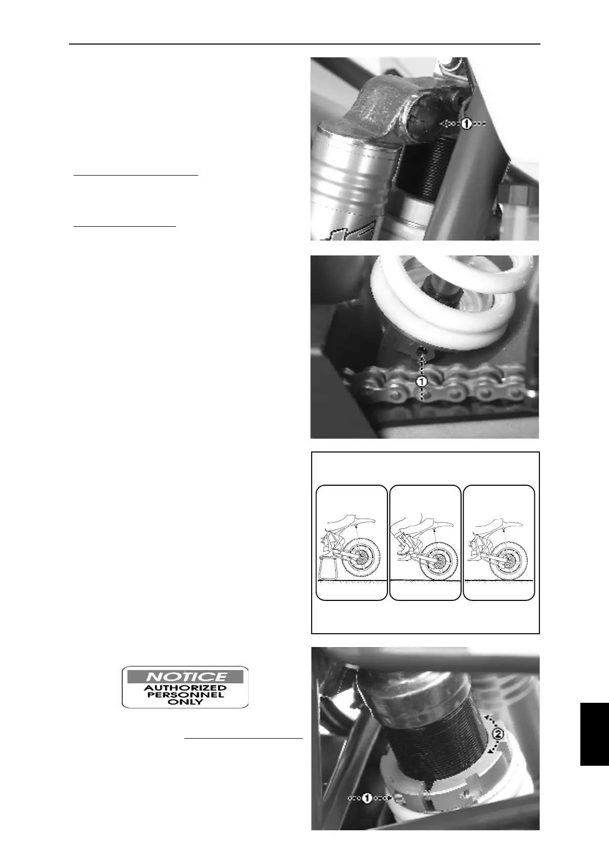 the rear wheel off the ground and the shock