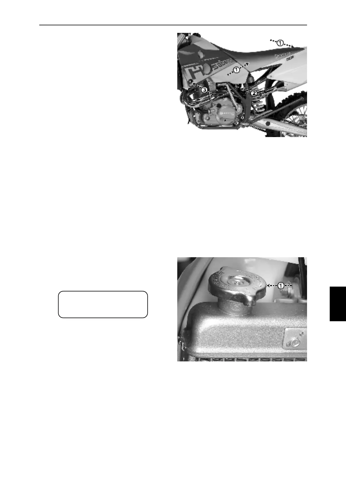 Remove the seat (Fig. 8D-1, see ”ENGINE -