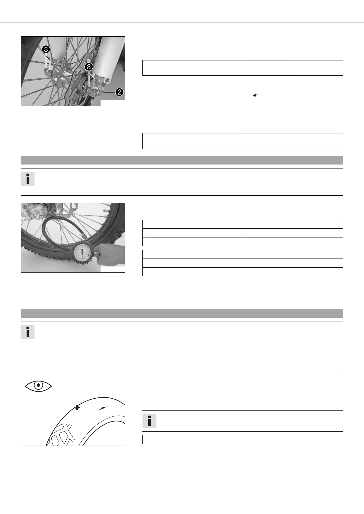 – Examine the front and rear tires for cuts, foreign bodies and other damage.