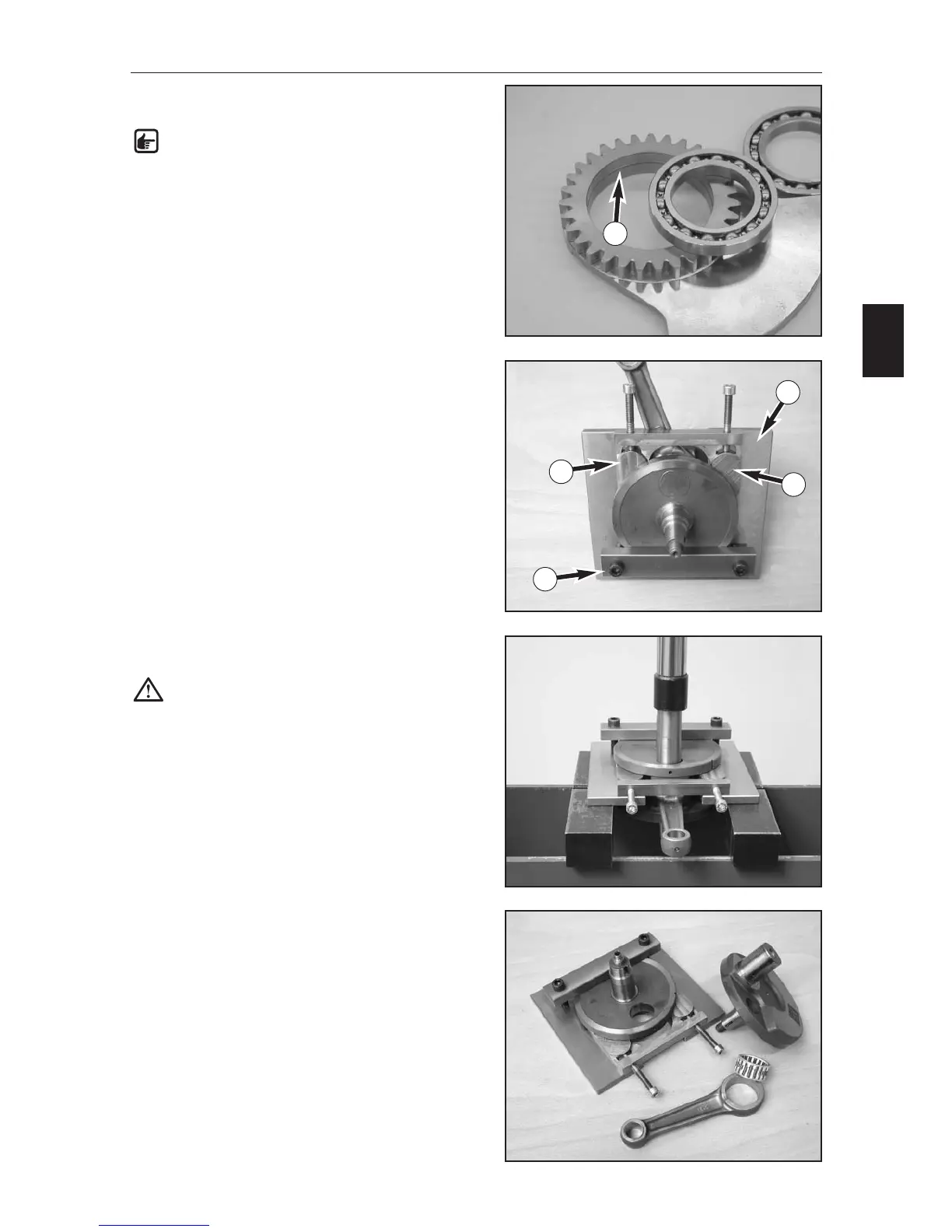 CAUTION: hold the lower part of the crankshaft