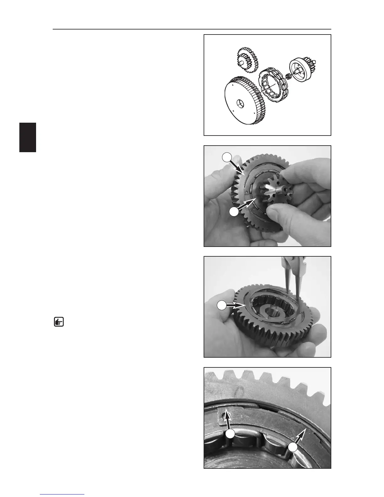 Oil the freewheel (3) and insert in the freewheel gear (4).