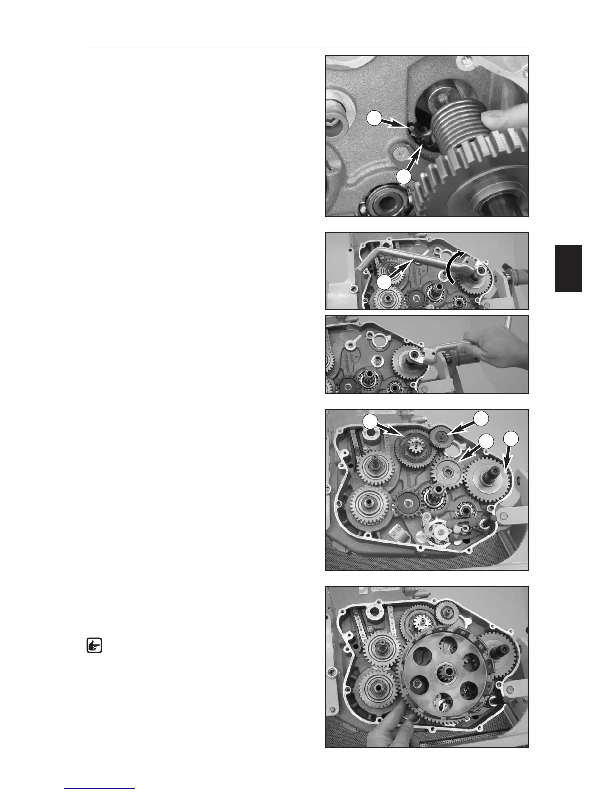 transmission gear (2) in the engine case and push the