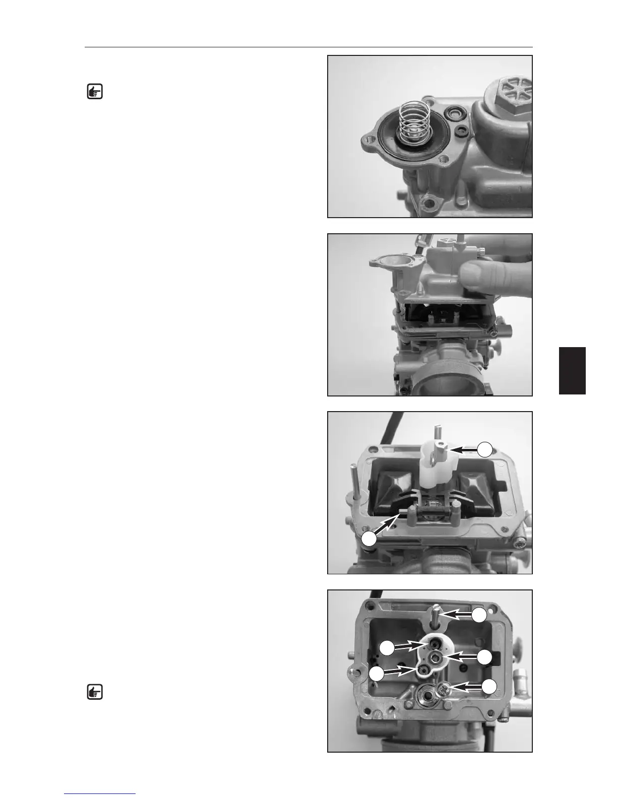 – Unscrew the idling jet (4), starting jet (5) and needle