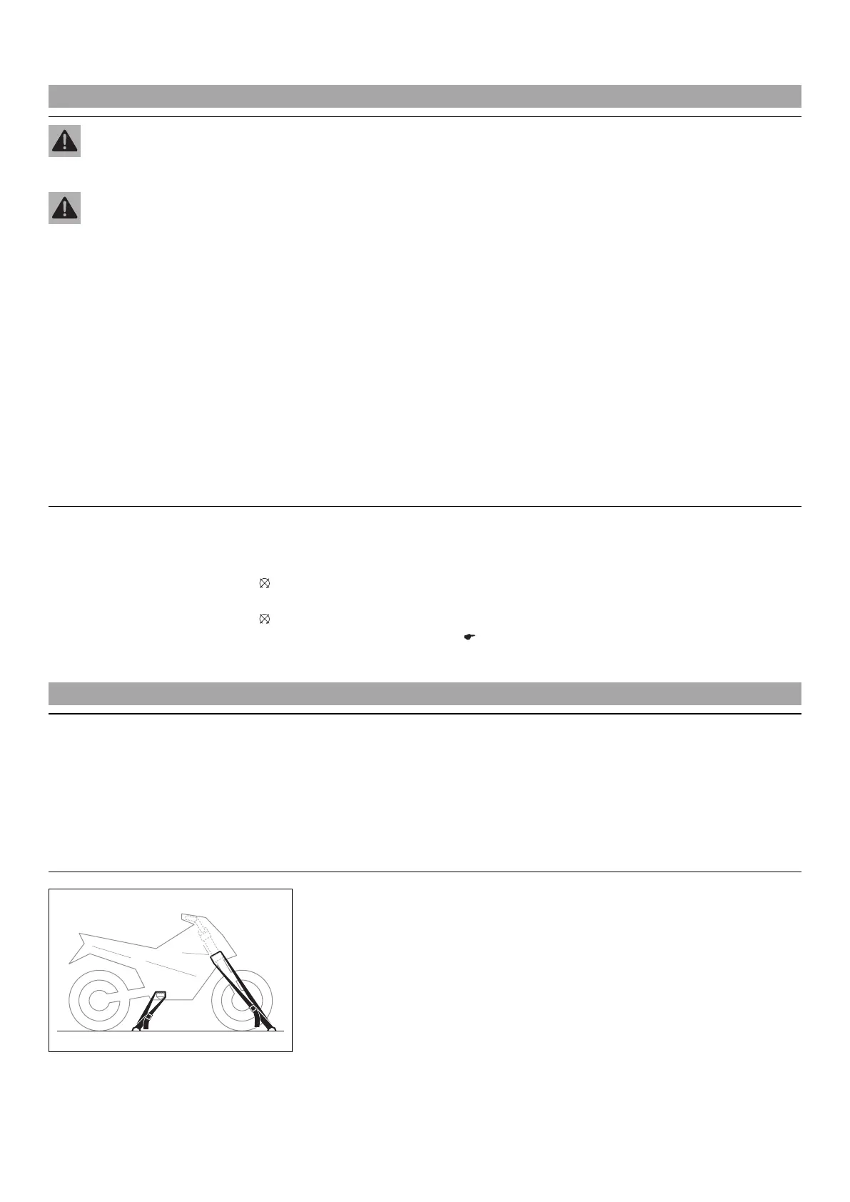 – Use tension belts or other suitable devices to secure the motorcycle against acci-