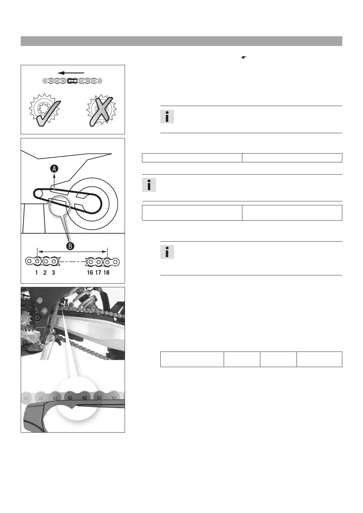 – Measure distance B of 18 chain links in the lower chain section.