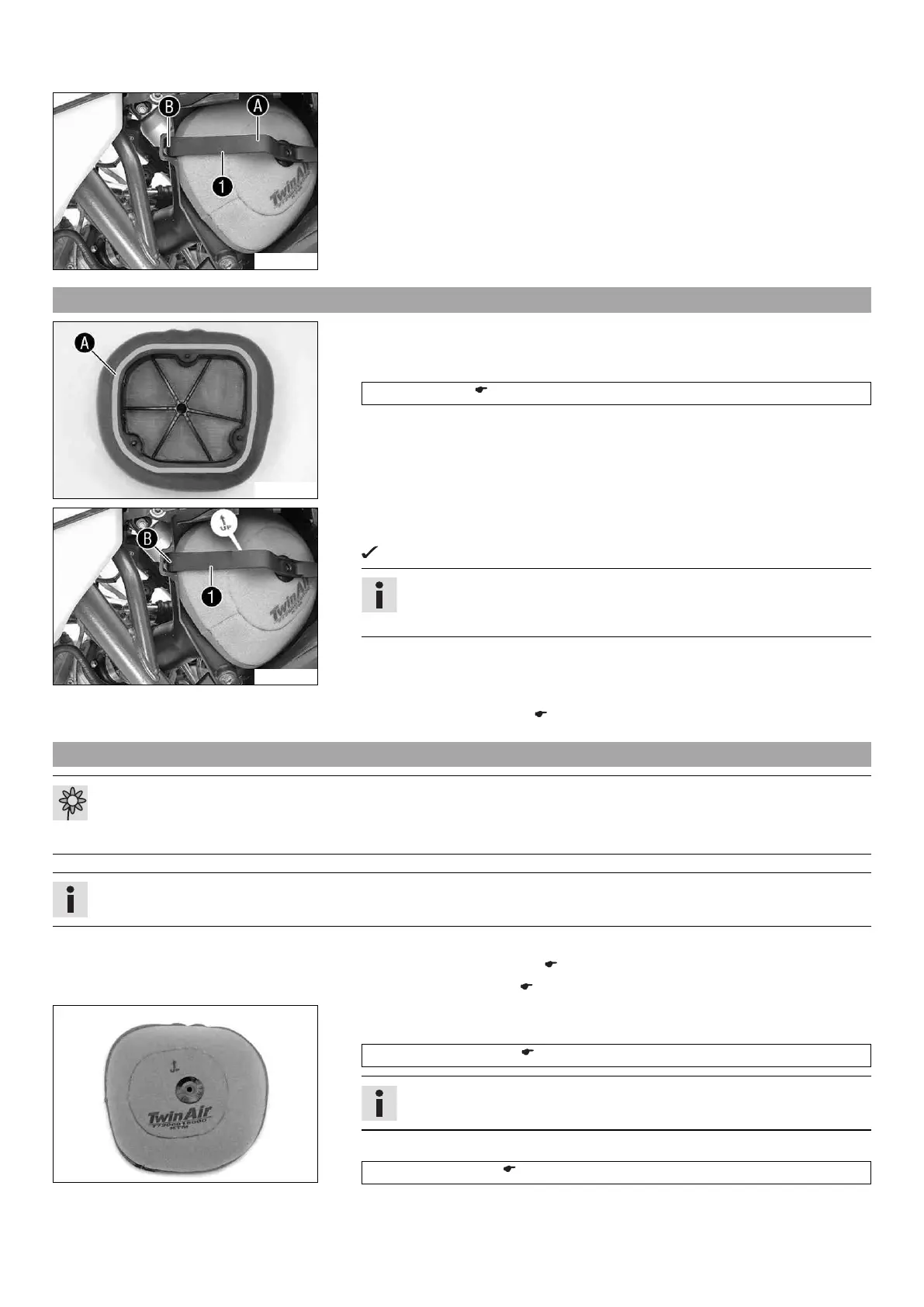 – Grease the air filter in area A.