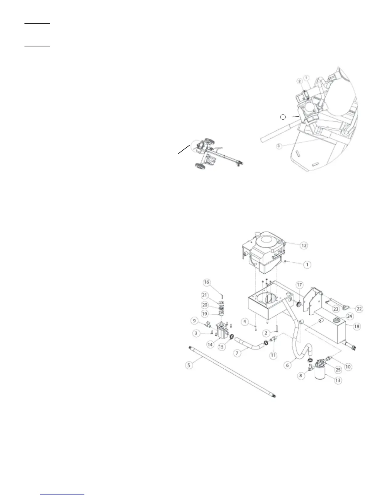 STEP 6: Slide one hose clamp on the end of the 3/4” x 44” hydraulic return hose (3) that comes from the fitting on the