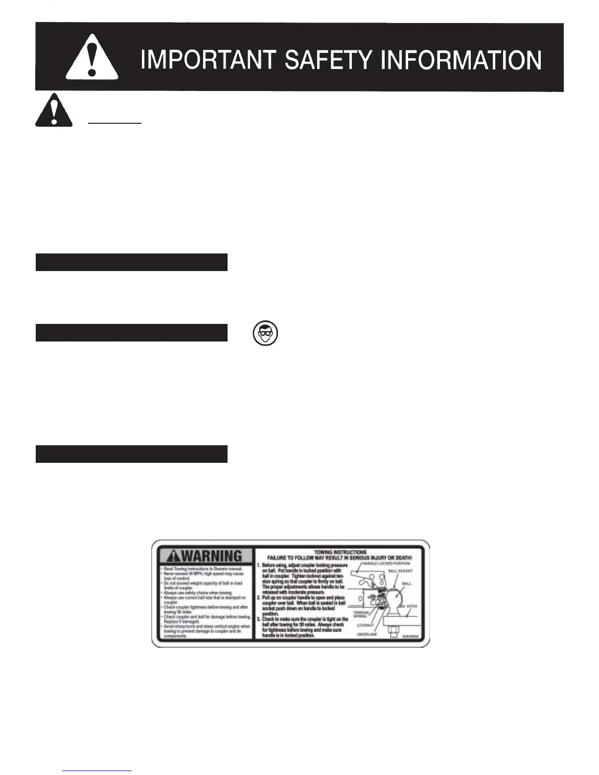 Huskee 2152374 - IMPORTANT SAFETY INFORMATION; Intended Use; Personal Protective Equipment; Towing Safety Instructions