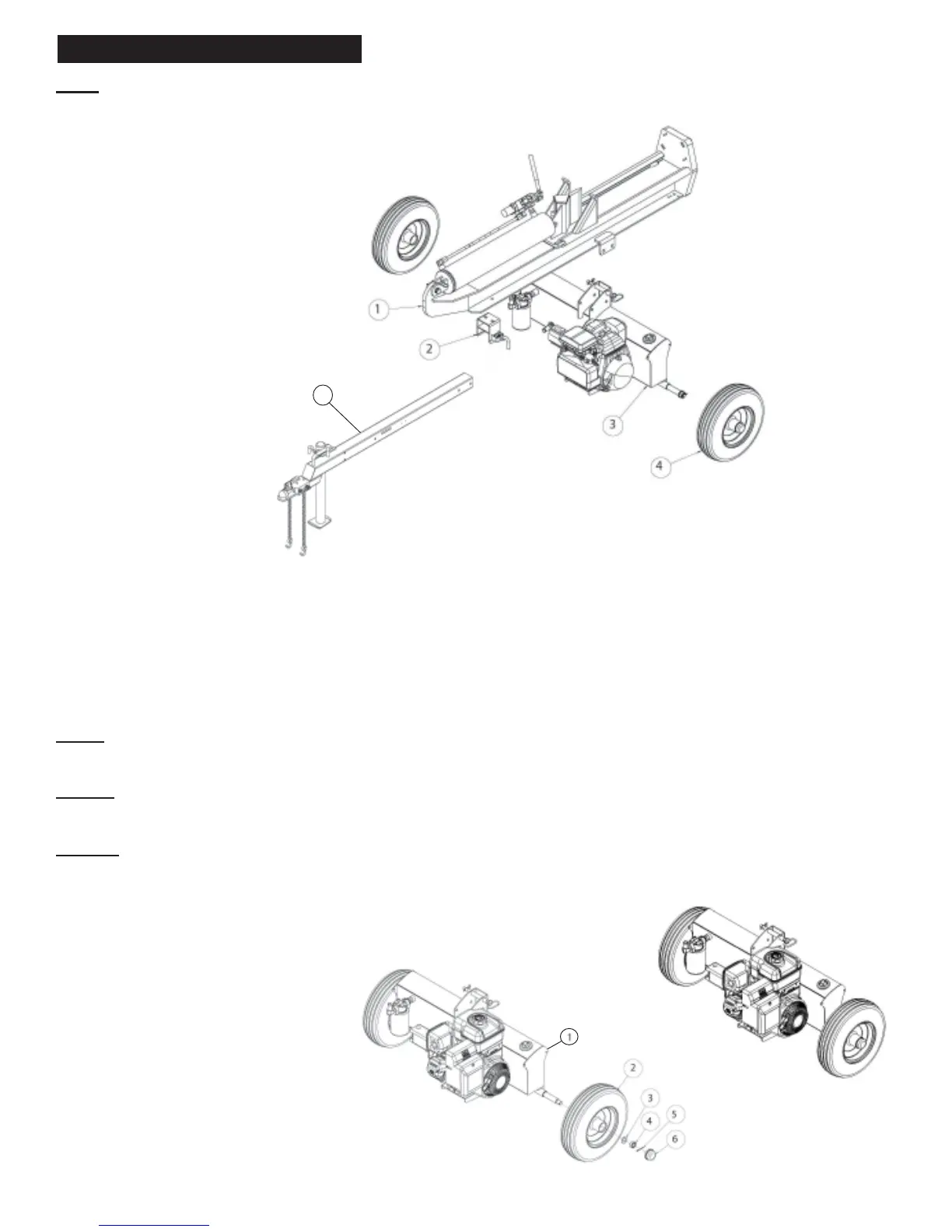 NOTE: This log splitter was partially assembled at the factory. Refer to the drawings and parts list should it become