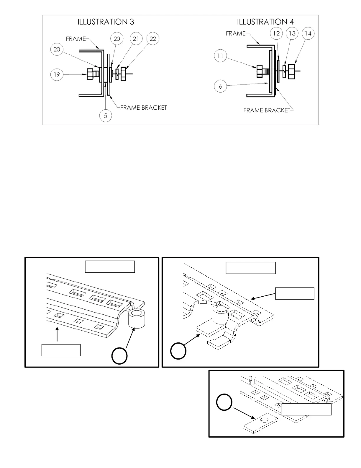 space above the frame bracket, place a spacer plate (#3) in this