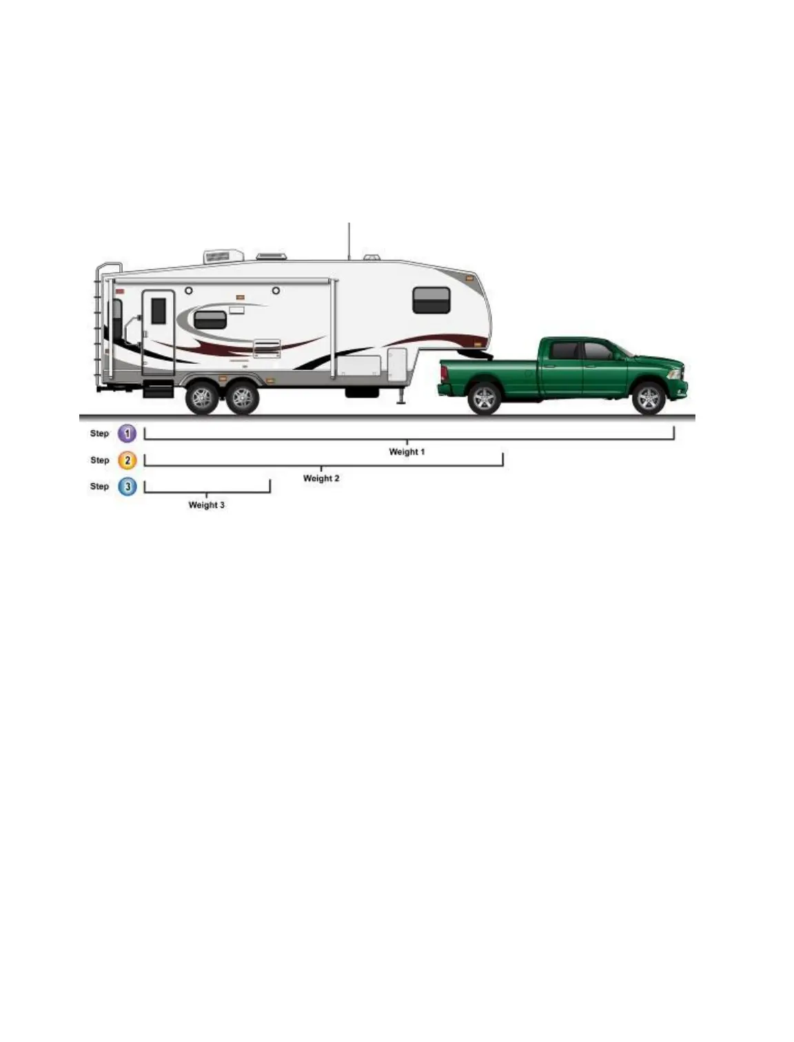 Étape 1 : peser le camion et la caravane à sellette. Il s’agit du poids 1; cela représente le