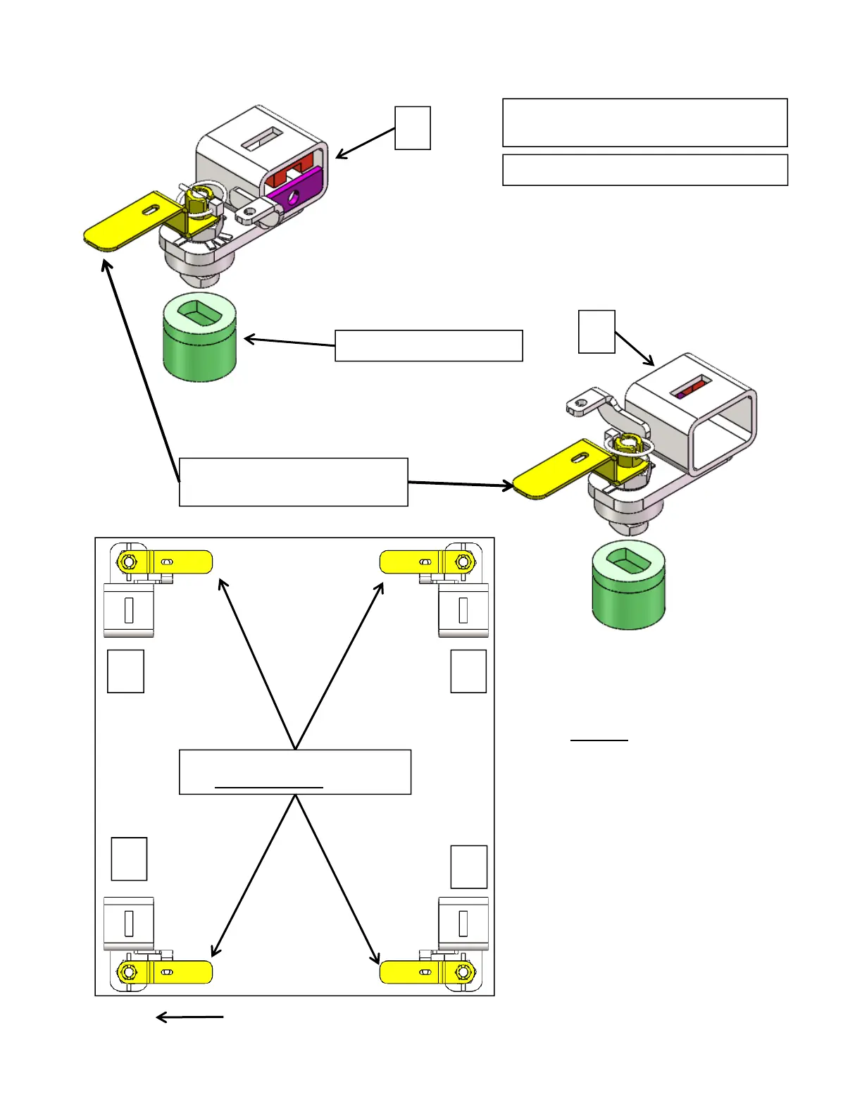 and T-bolts must be rotated into the Un-locked position as shown.