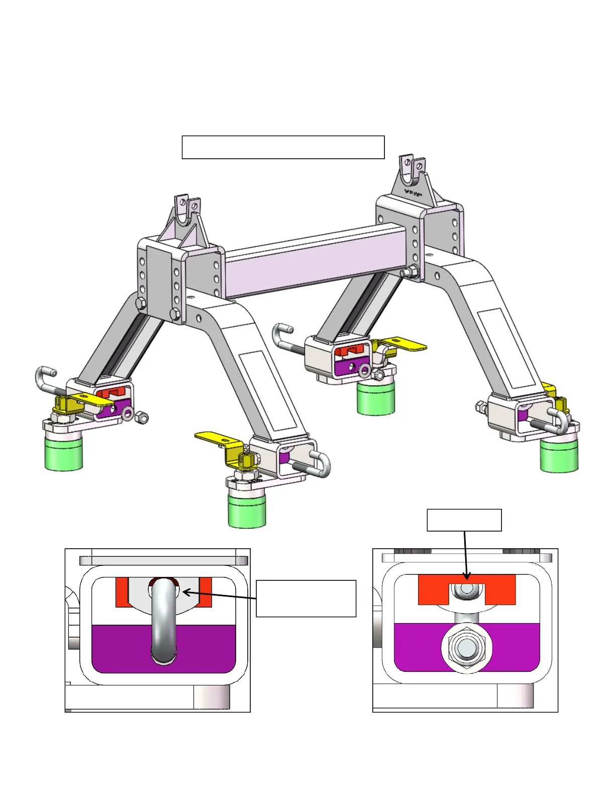 5. Install a “Foot Hook” , ½” Flat Washer and 1/2-13 Nylock Nut on each adapter as shown in the picture below.