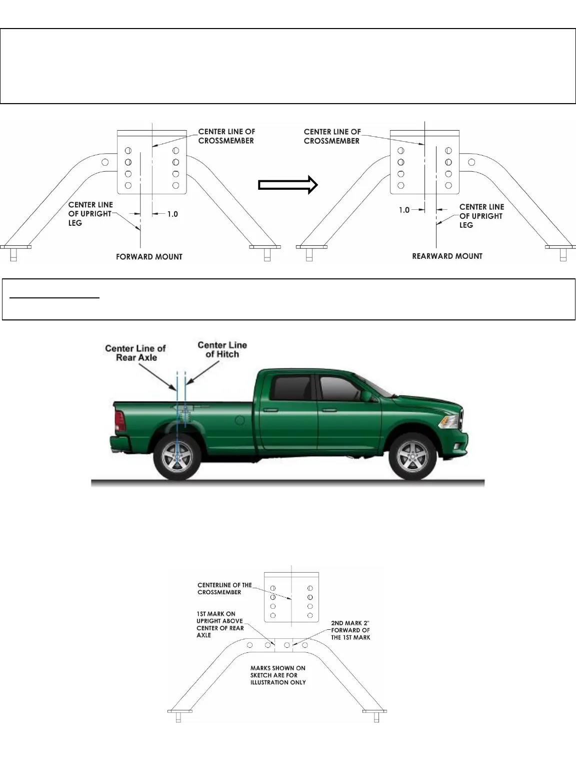 IMPORTANT:- The Center of the 5thWheel Hitch should be positioned between 1”