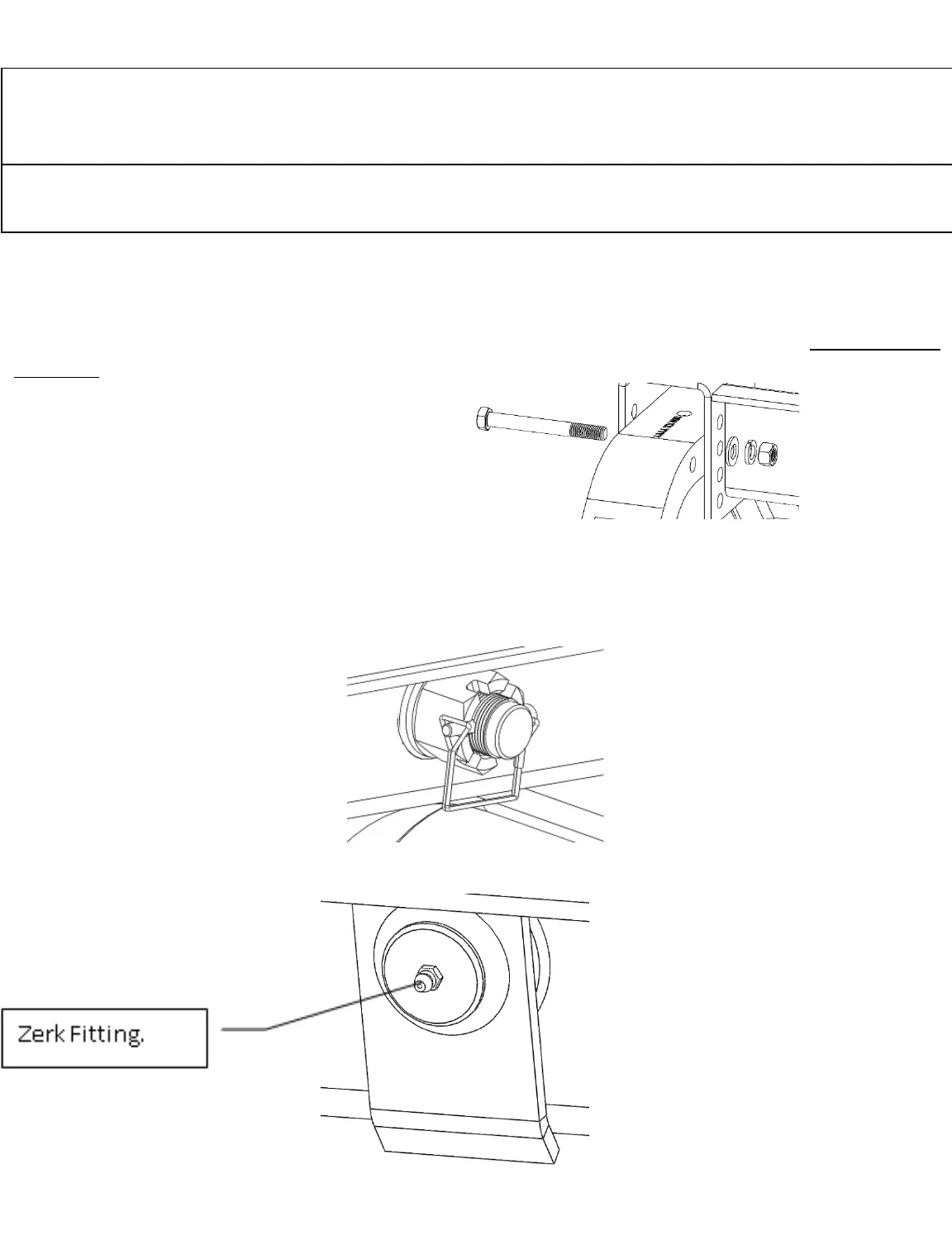 B) Using a grease gun, grease the Zerk fitting on the plate side of the pivot pin.