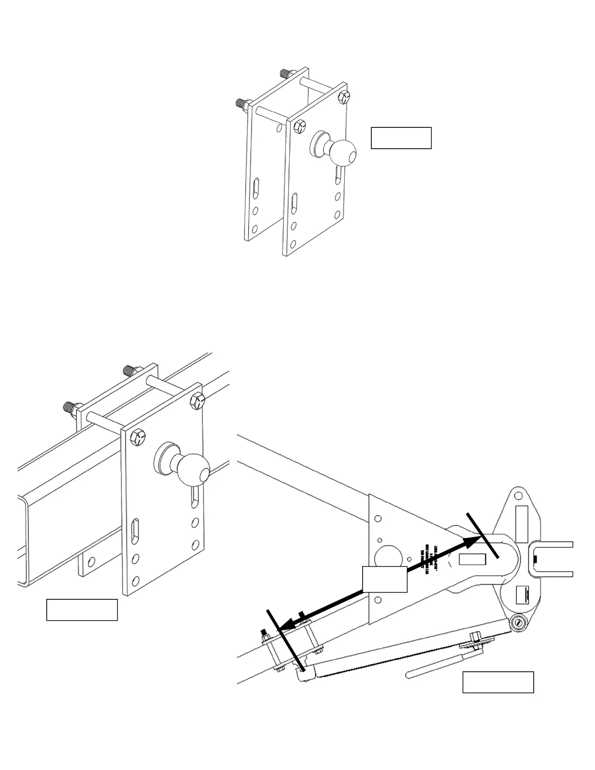 1: Assemble ball plate assembly (#1) and backing plate (#2) with the two 3/8” hex bolts