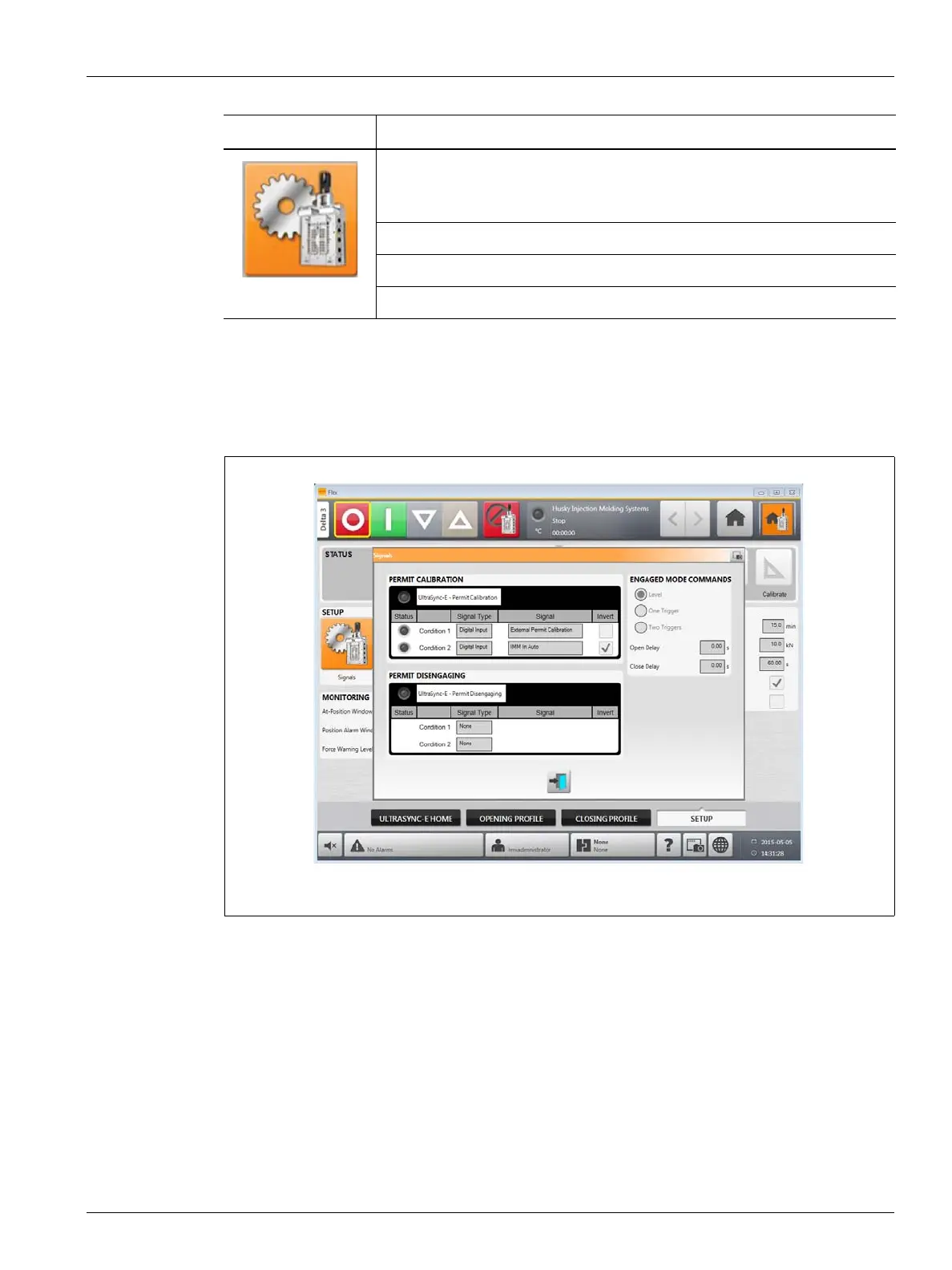 Use the Signals screen to configure the engage mode commands, permit calibration and
