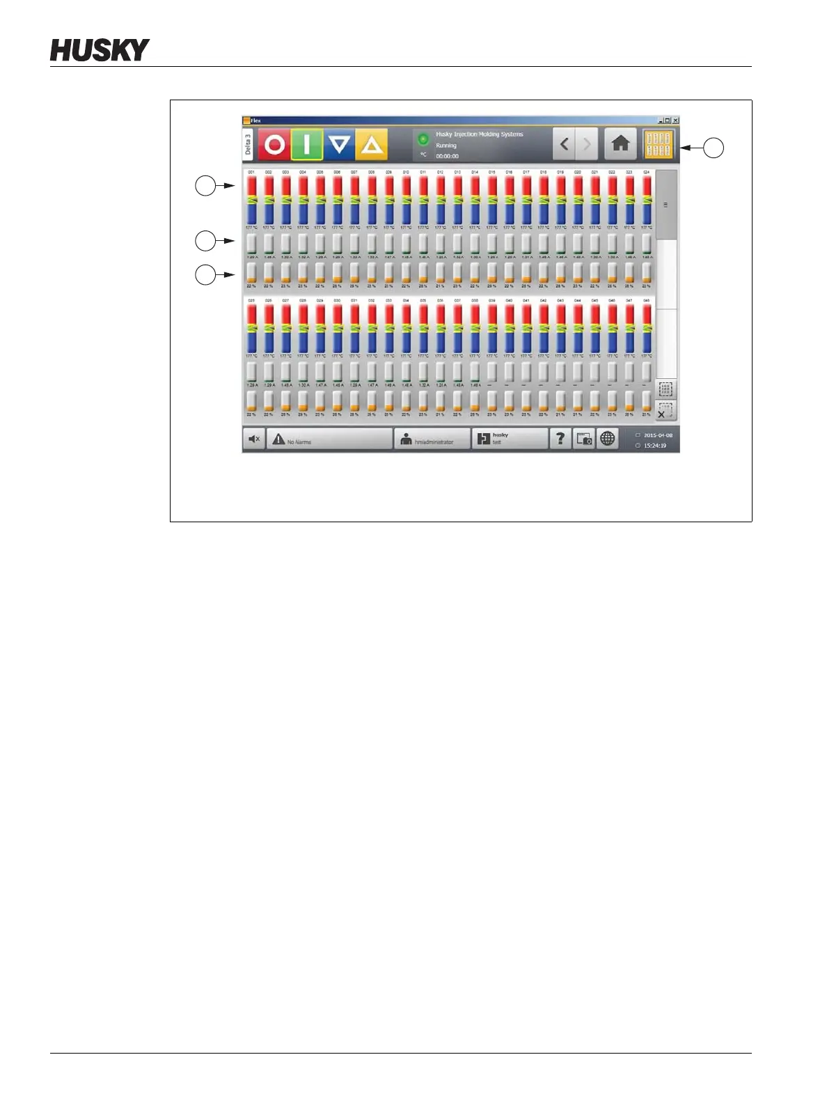1. Config Button 2. Zone Bars 3. Amperage Bars 4. Power Bars
