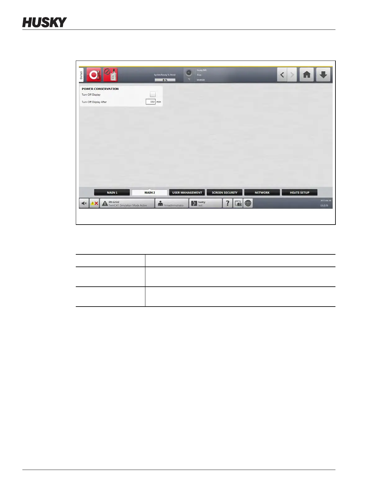 Touch the Main 2 tab at the bottom of the System Setup screen to see the setup and