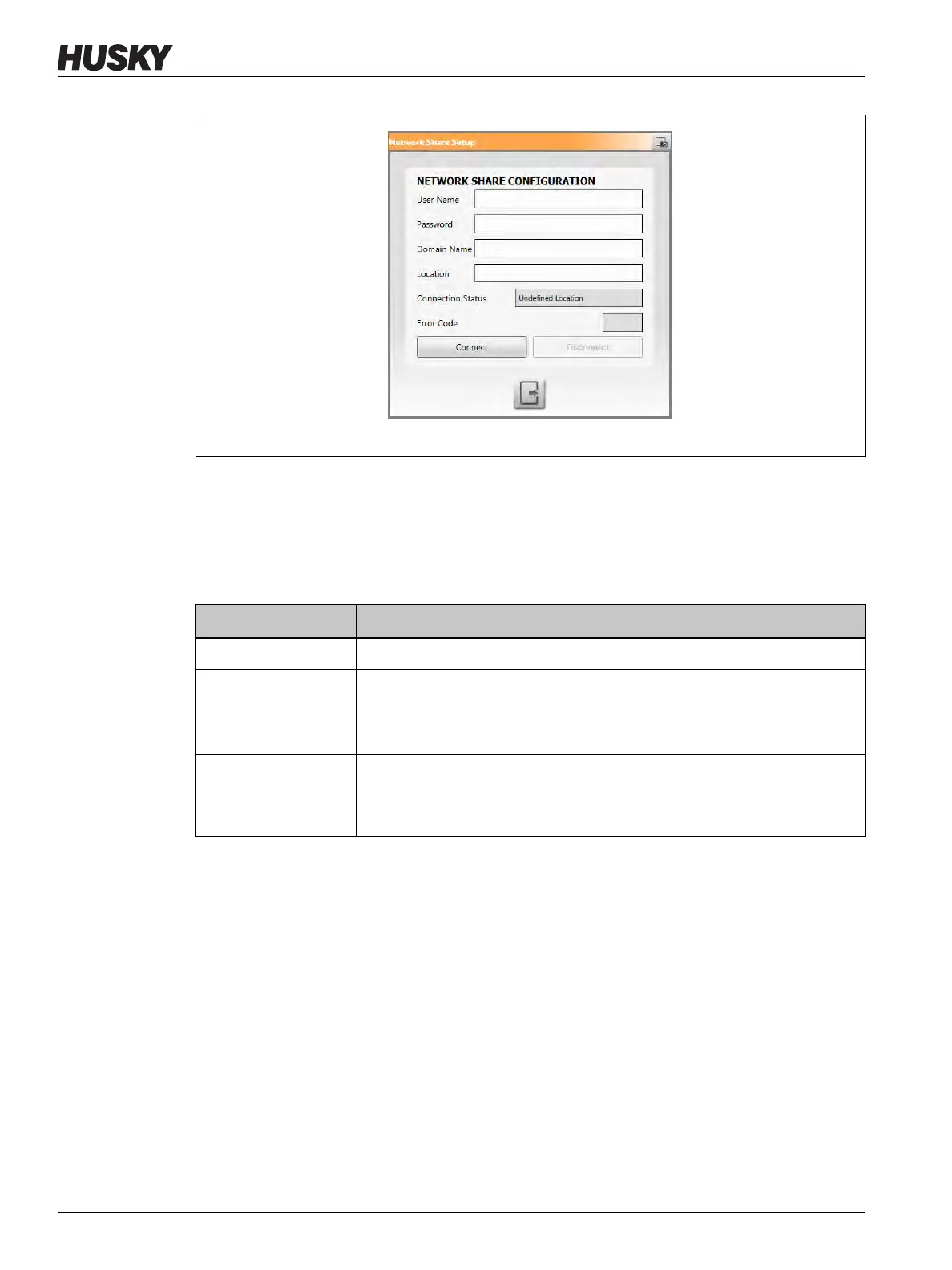 Table 10-3 gives a description of the fields and buttons used to connect to a network share.