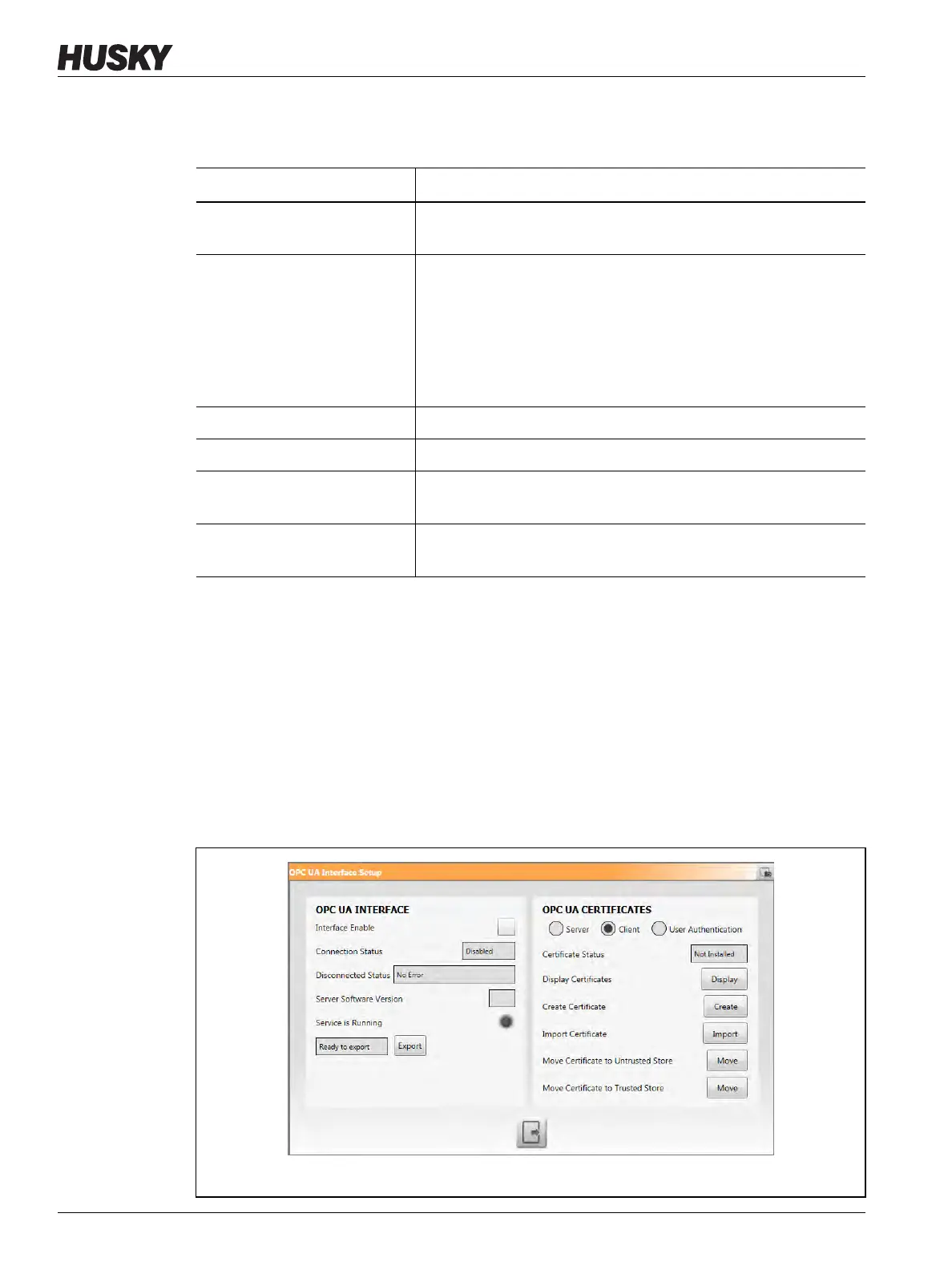 Table 10-5 gives the descriptions for the OPC UA interface items (left side of window).