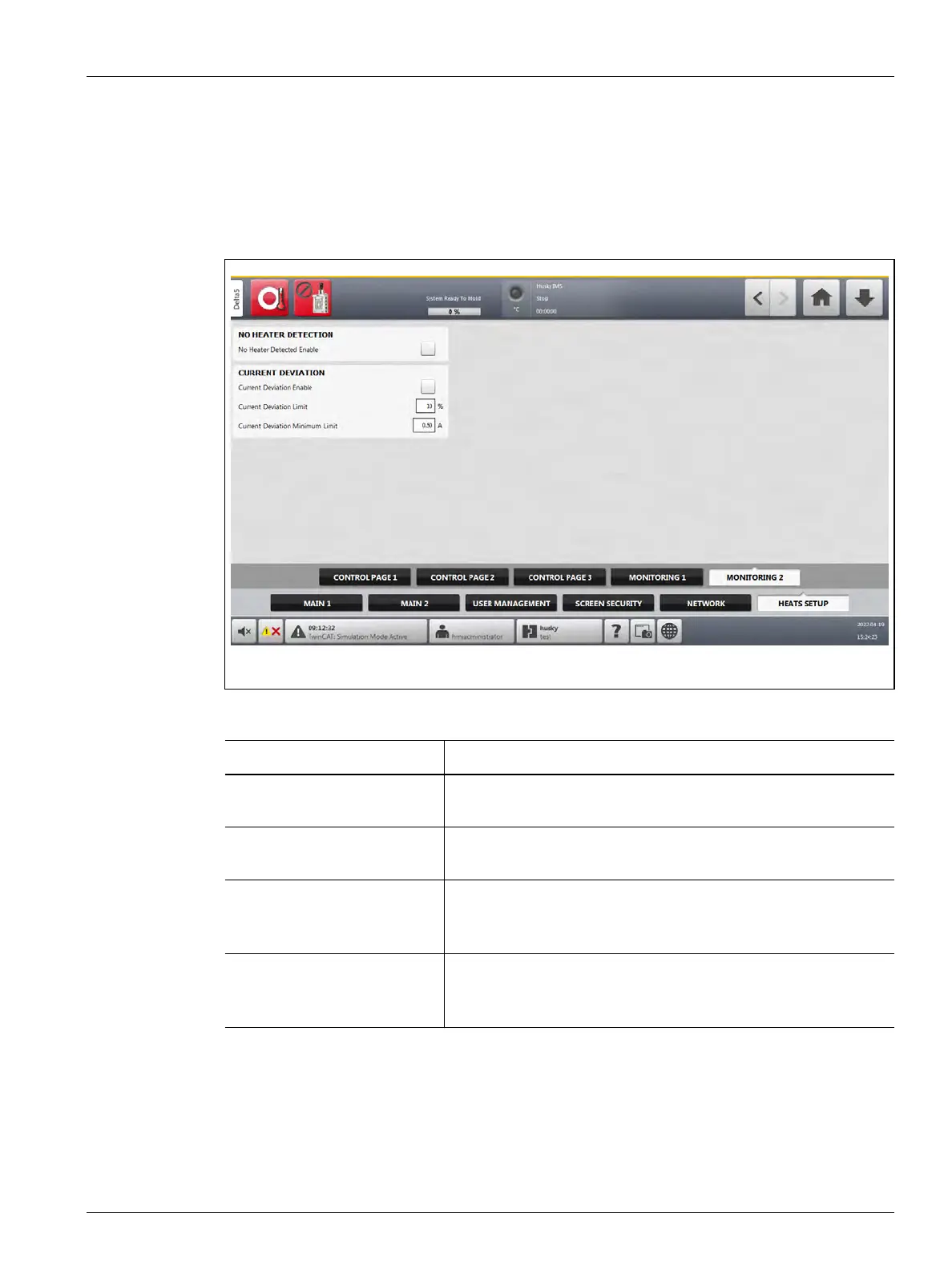 Table 10-12 System Setup Screen - Heats Setup - Monitoring 2