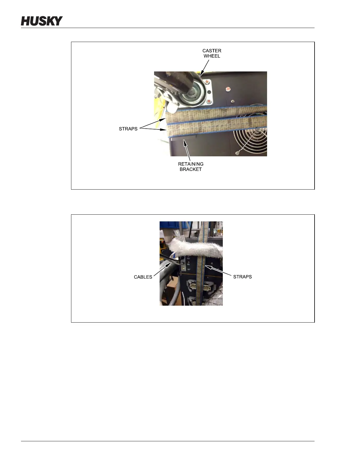 b. Make sure that the straps do not pinch or crush the cables attached to the controller.