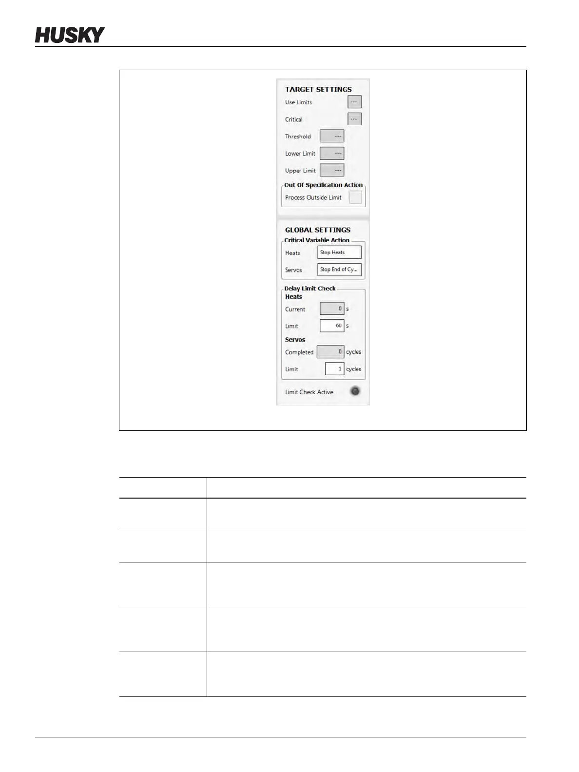 Table 12-3 Process Limits Screen Fields