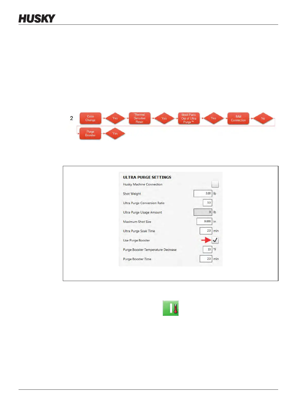 the "Husky Machine Connection" or "Ultra Purge Booster" settings should be enabled