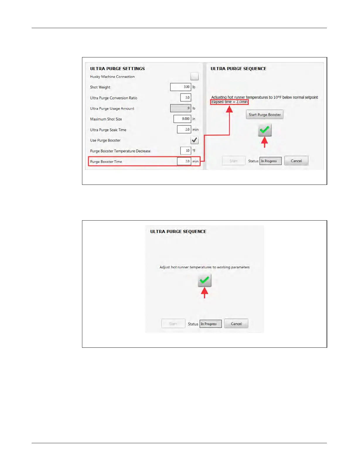 23. When the Purge Booster Time completes, touch the green check mark button to