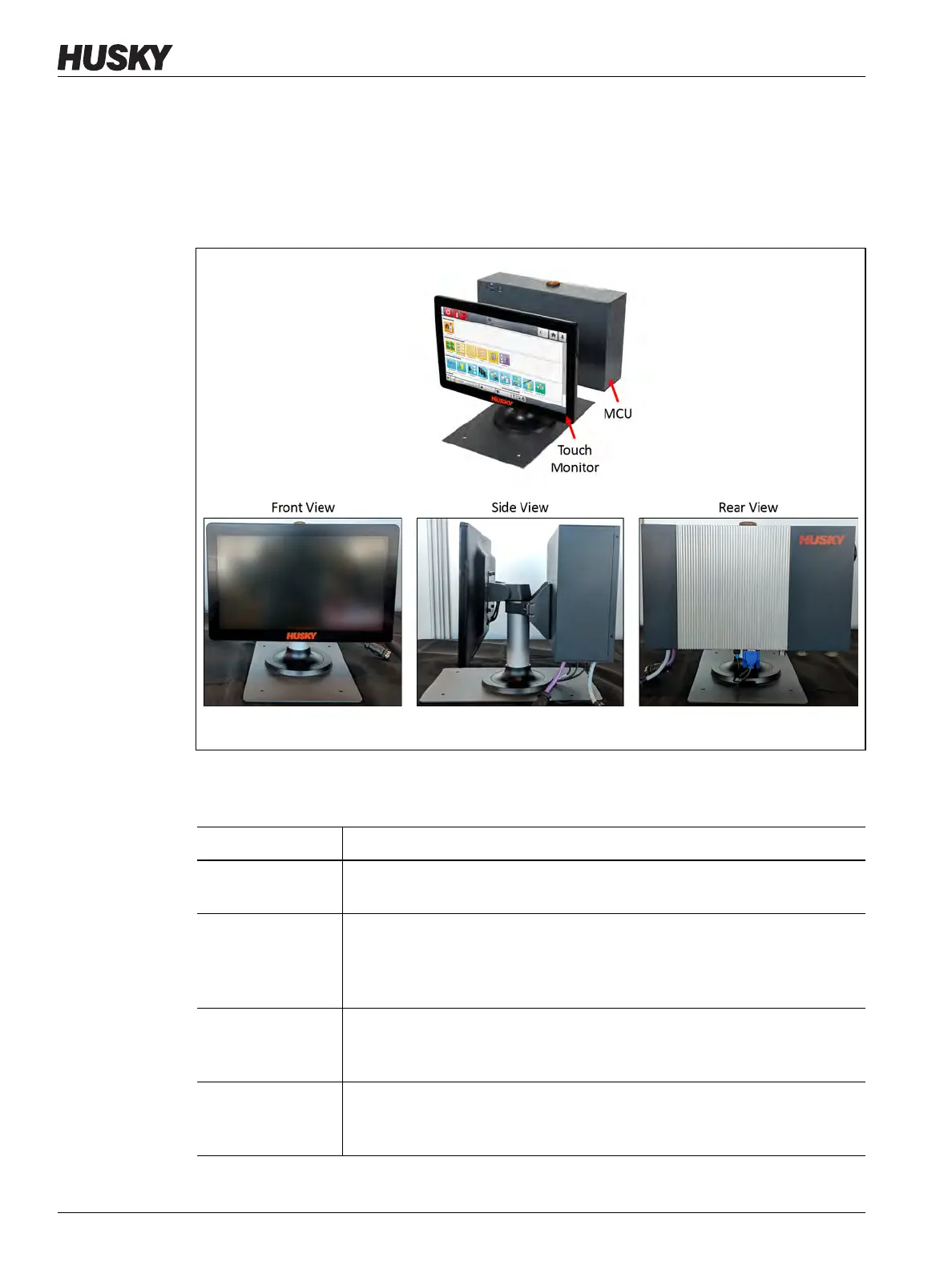 two main components: the touch monitor and the master control unit (MCU). Refer to