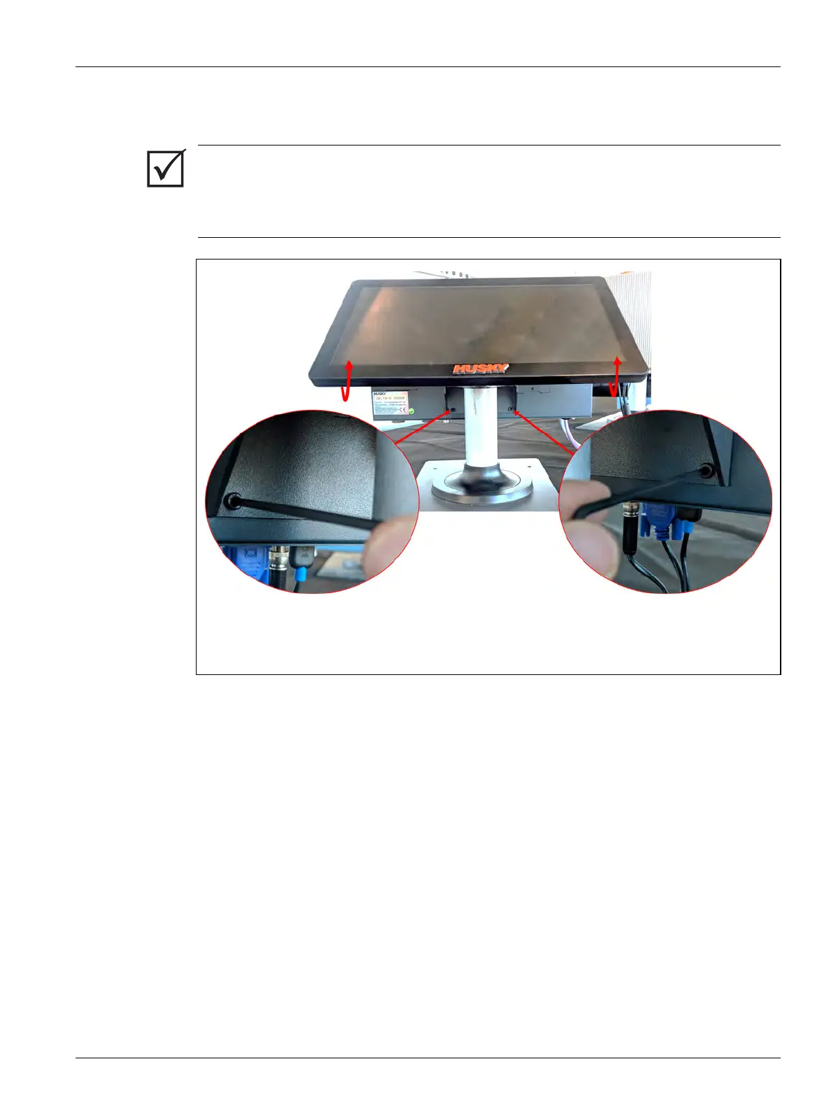 7. Rotate the touch monitor to the full forward position.