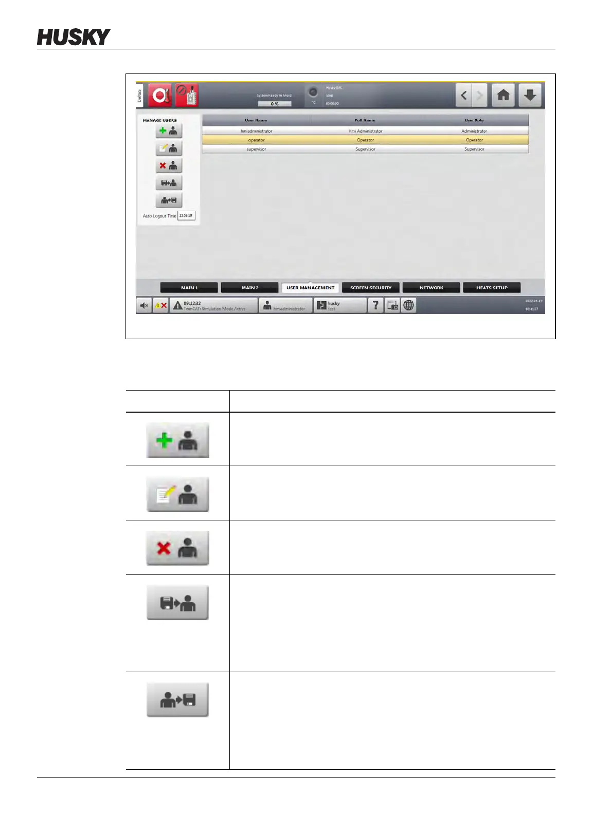 4. Touch one of the buttons described in Table 5-2 to manage users.