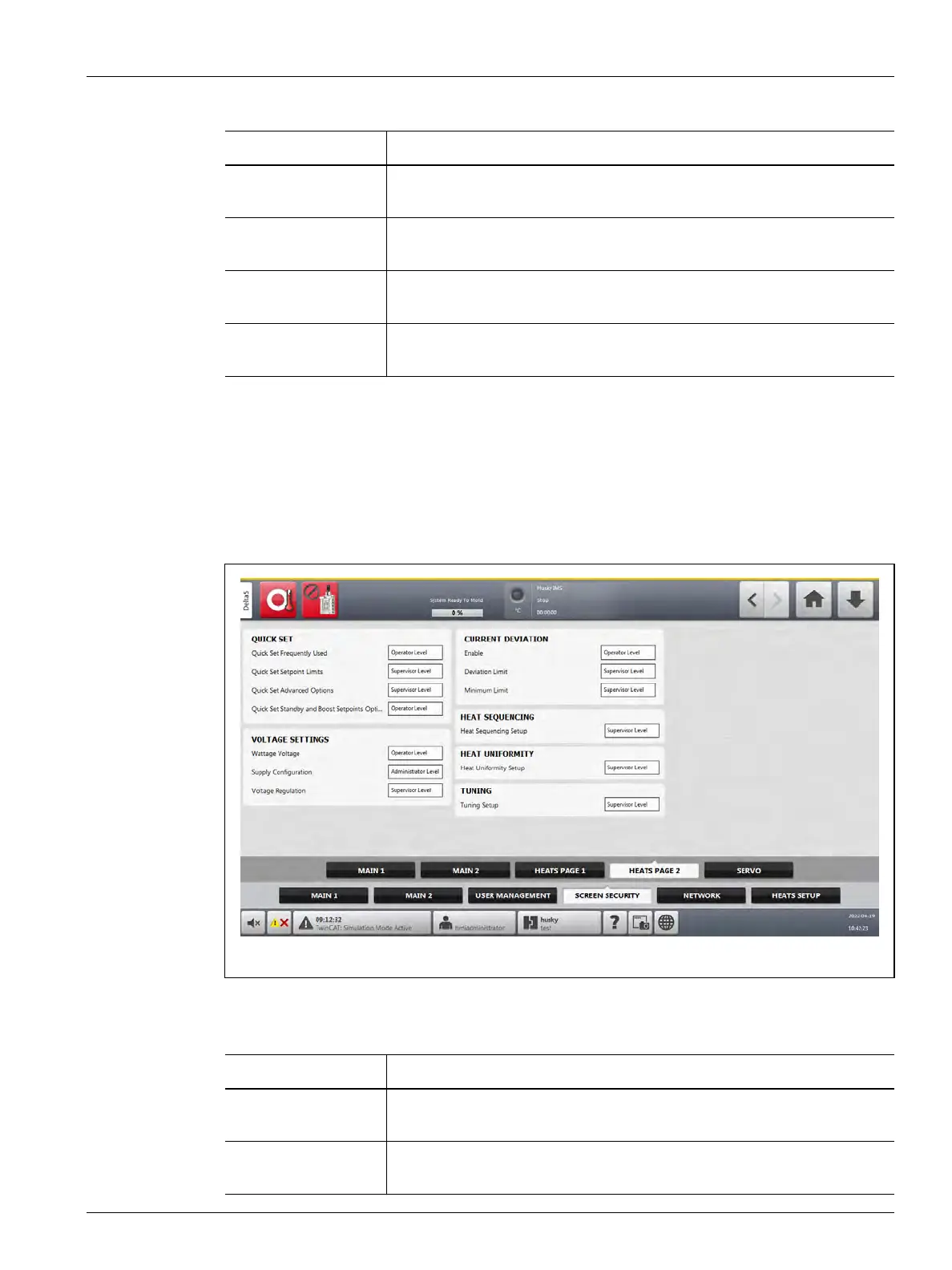 Table 5-6 Screen Security - Heats Page 2 Screen